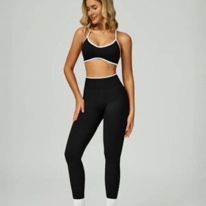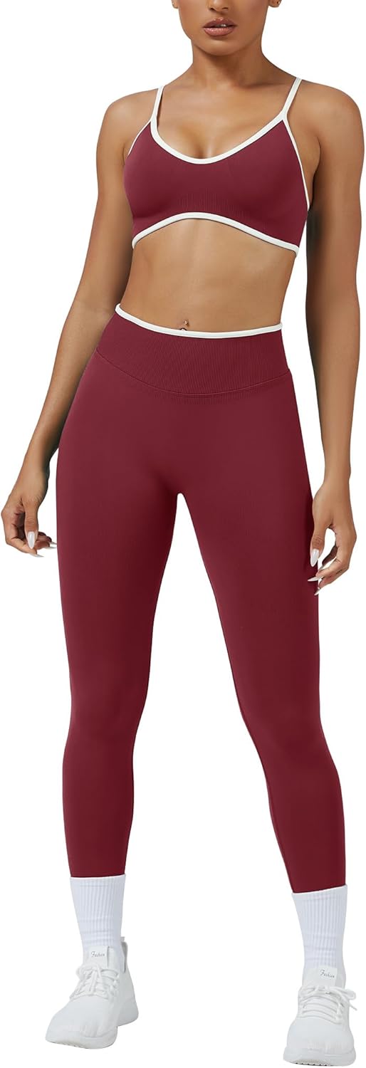 ABOCIW Womens 2 Piece Workout Sets Seamless Color Block Sports Bra Scrunch Butt Lifting High Waist Leggings Gym Set quantity