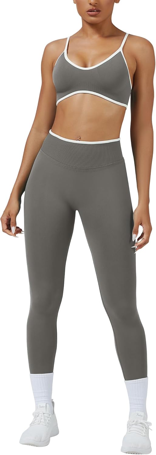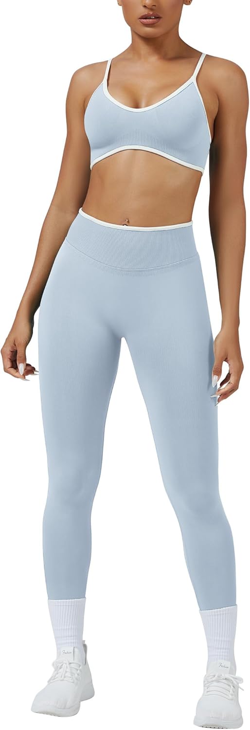 ABOCIW Womens 2 Piece Workout Sets Seamless Color Block Sports Bra Scrunch Butt Lifting High Waist Leggings Gym Set