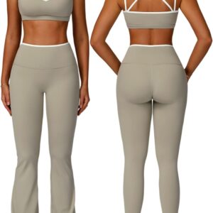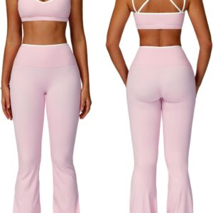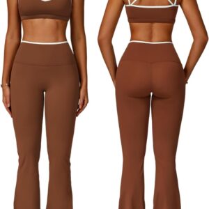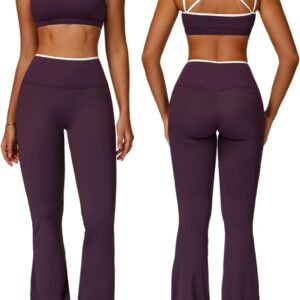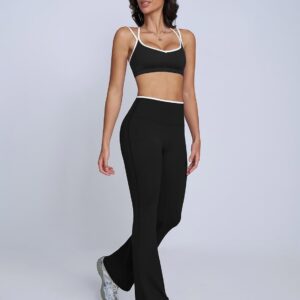 ABOCIW Workout Sets for Women 2 Piece Color Block Strappy Sports Bra High Waist Flare Leggings Gym Yoga Pilates Outfits