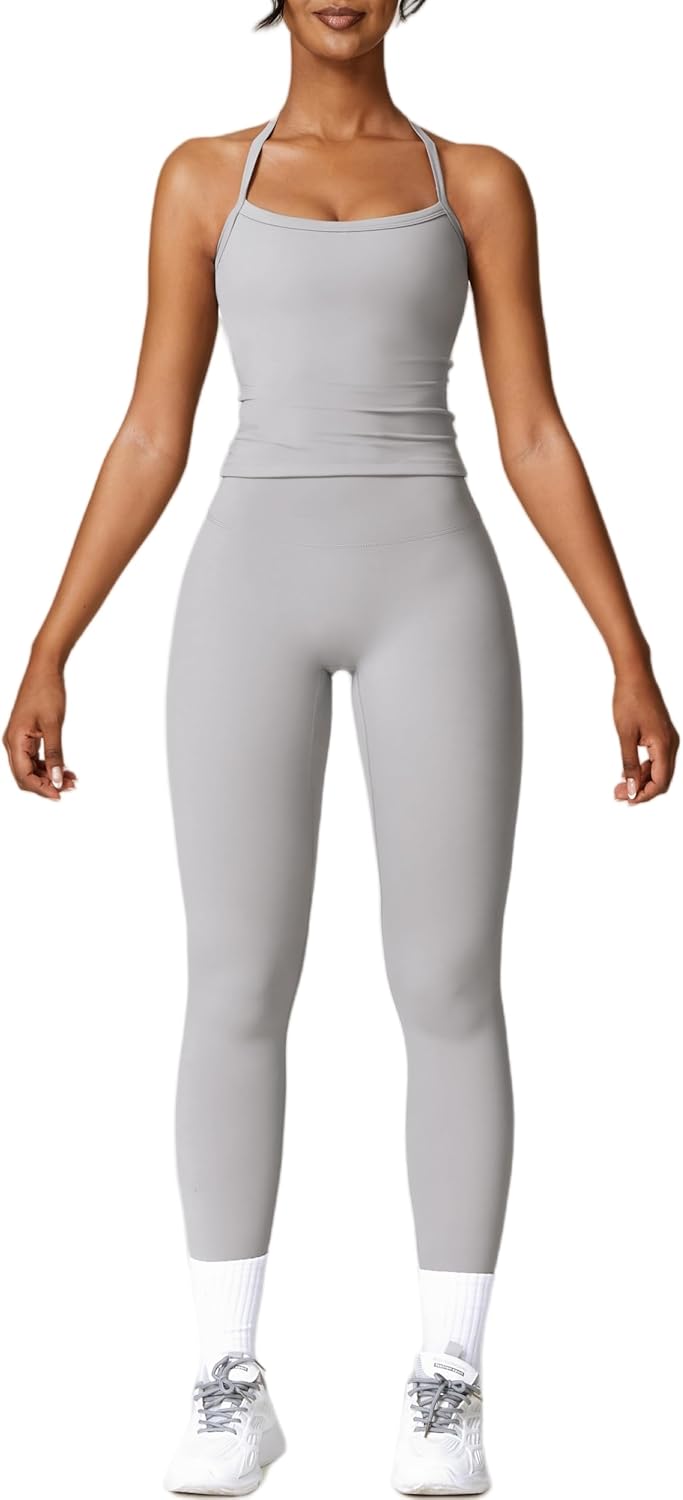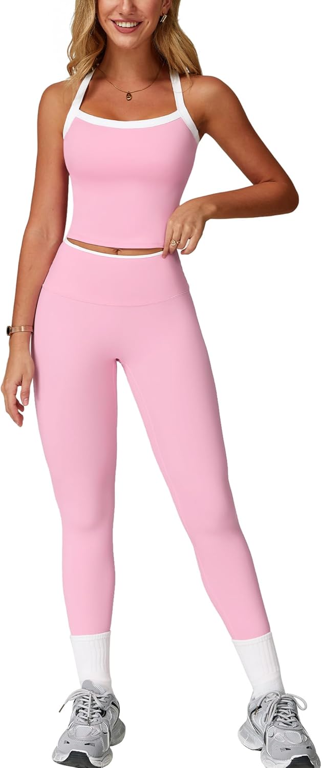 ABOCIW Workout Sets for Women 2 Piece Padded Sports Bra Tank Top High Waist Leggings Sets Gym Yoga Work Out Clothes