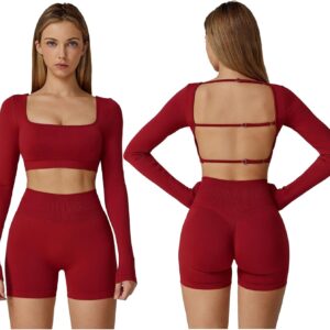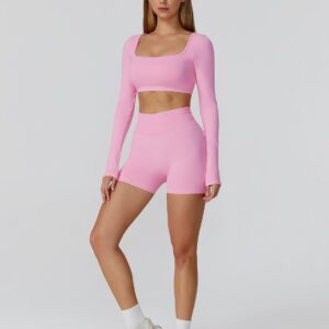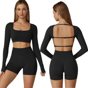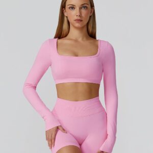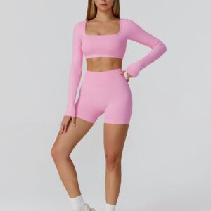 Feature: Long Sleeve, Square Neck, Movable Chest Pads, Cutout, Adjustable Belt, Solid Color, High Rise, Scrunch Butt, Slim Fit