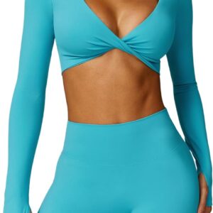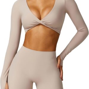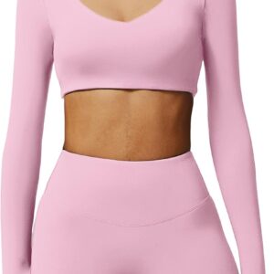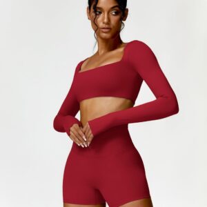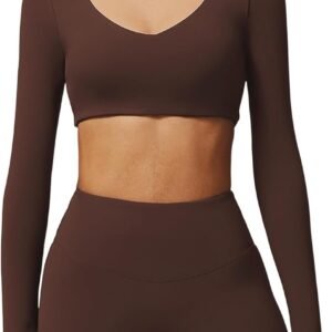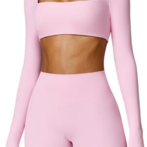 - 【Long Sleeve Crop Tops for Women】2 piece workout sets for women workout crop tops for women, Light-to-medium support, Removable padding with inbuilt bra, Low-cut square neckline, Super-cropped length, 4-way stretch ,Lightweight, silky-feel, Quick-dry. This crop tops for women will help you feel and workout your best. Long sleeves workout crop tops sports shirts fitness activewear, Style with our leggings or shorts for a perfect gym fit.