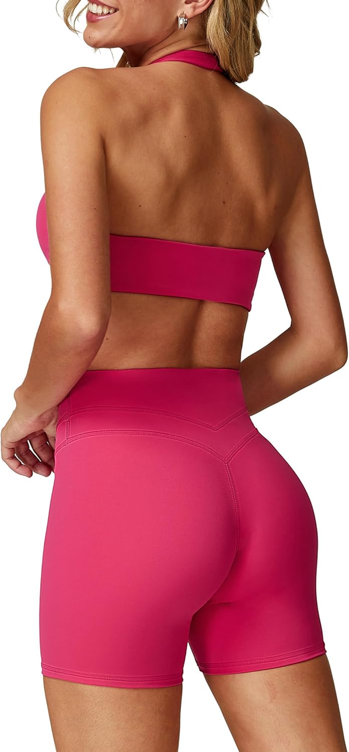- Backless Halter Sports Bra: Womens halter sports bra padded low back yoga bar workout crop top with built in bra,open back sexy halter sports bra for women, backless sleeveless workout tops,womens workout sets, 2 piece workout sets for women, gym sets woman, two piece gym sets for women.