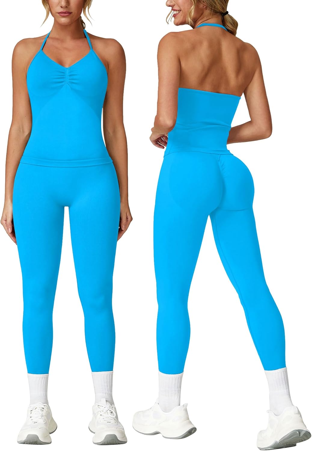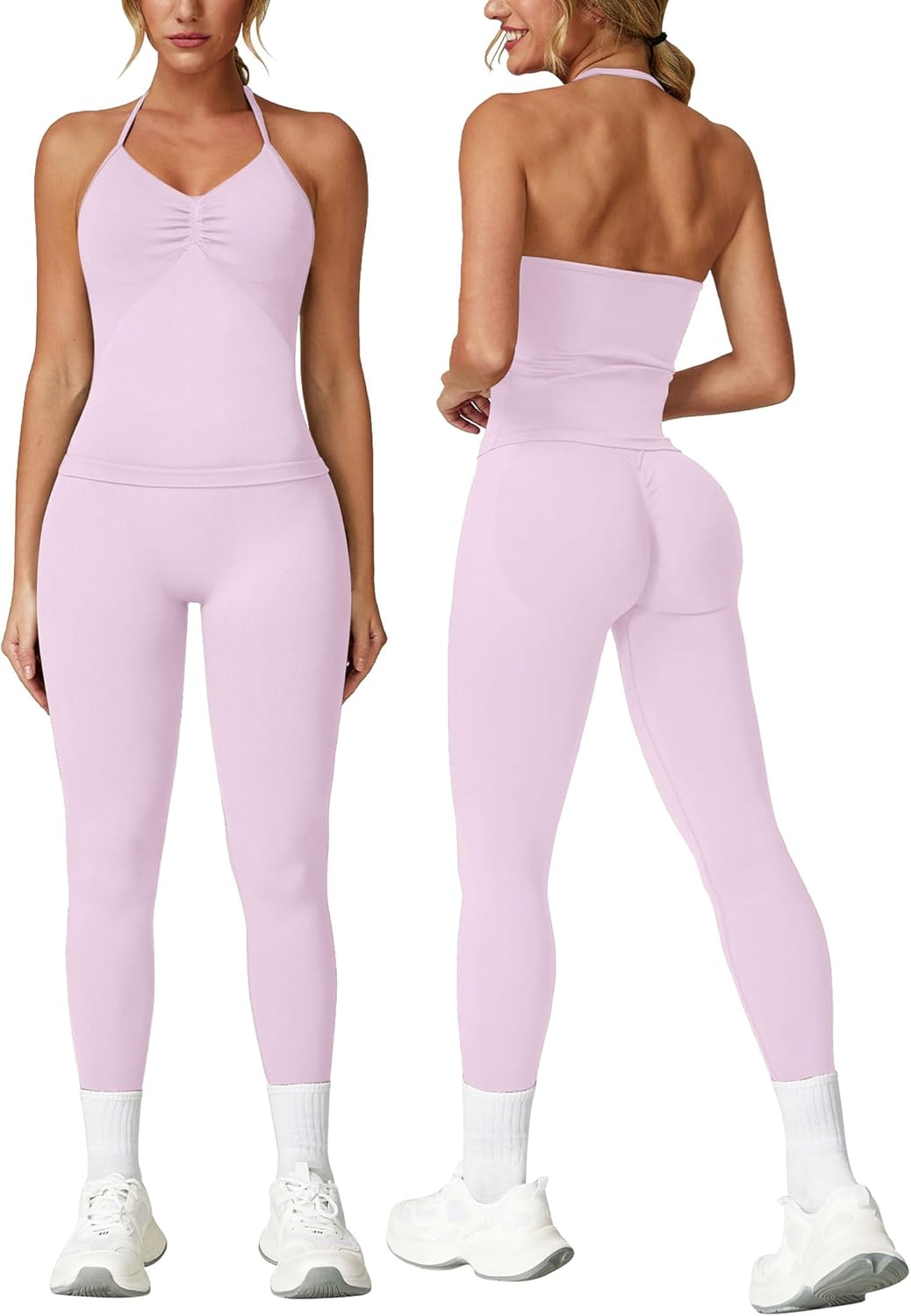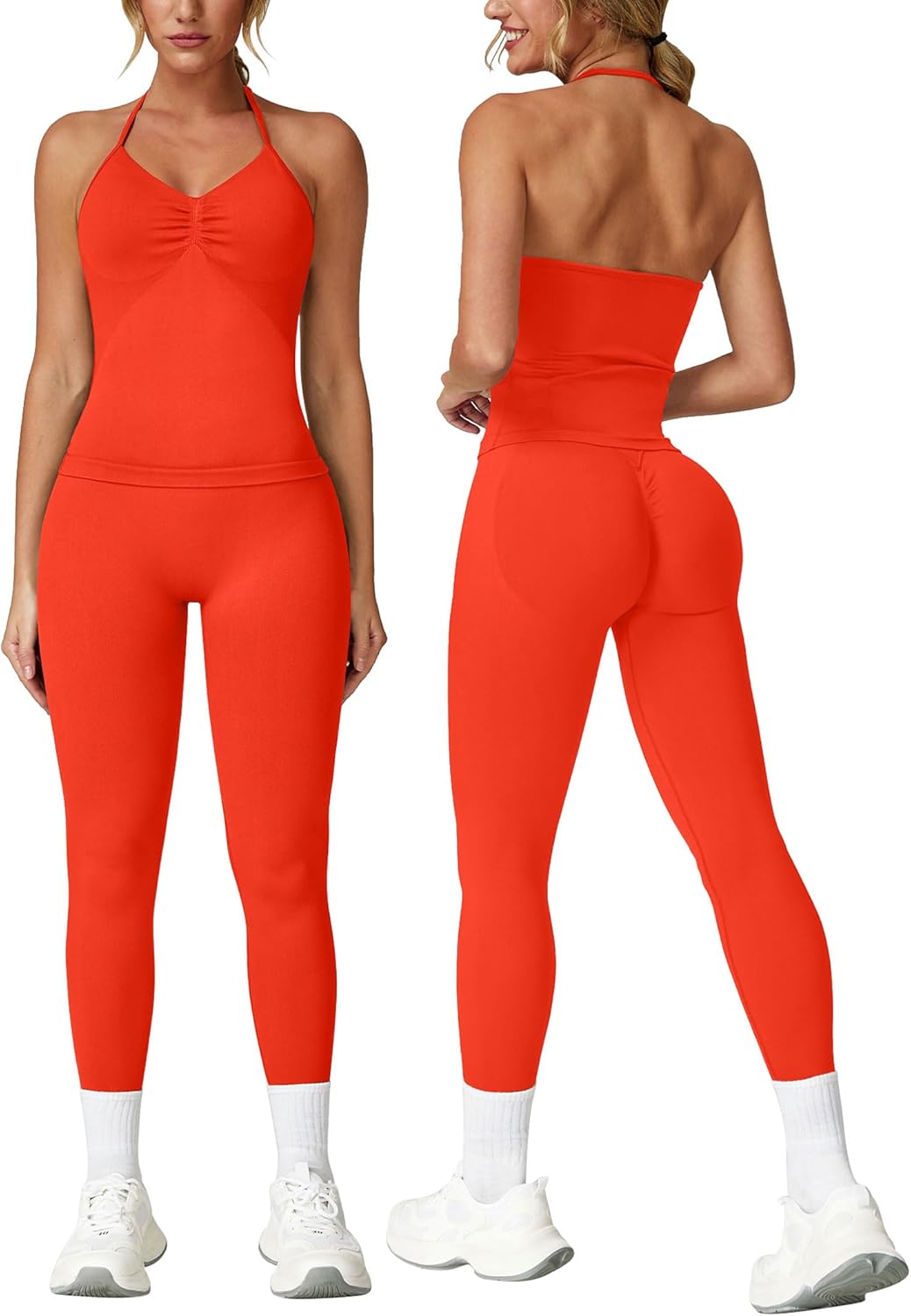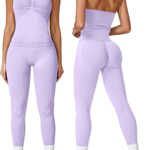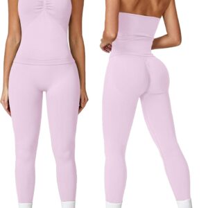 ABOCIW Workout Sets for Women Seamless Scunch Butt Lifting Impact Leggings Longline Strappy Top 2 Piece Gym Outfits quantity