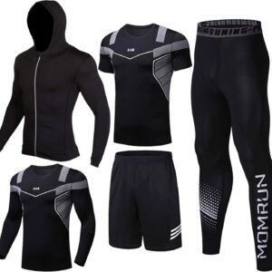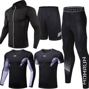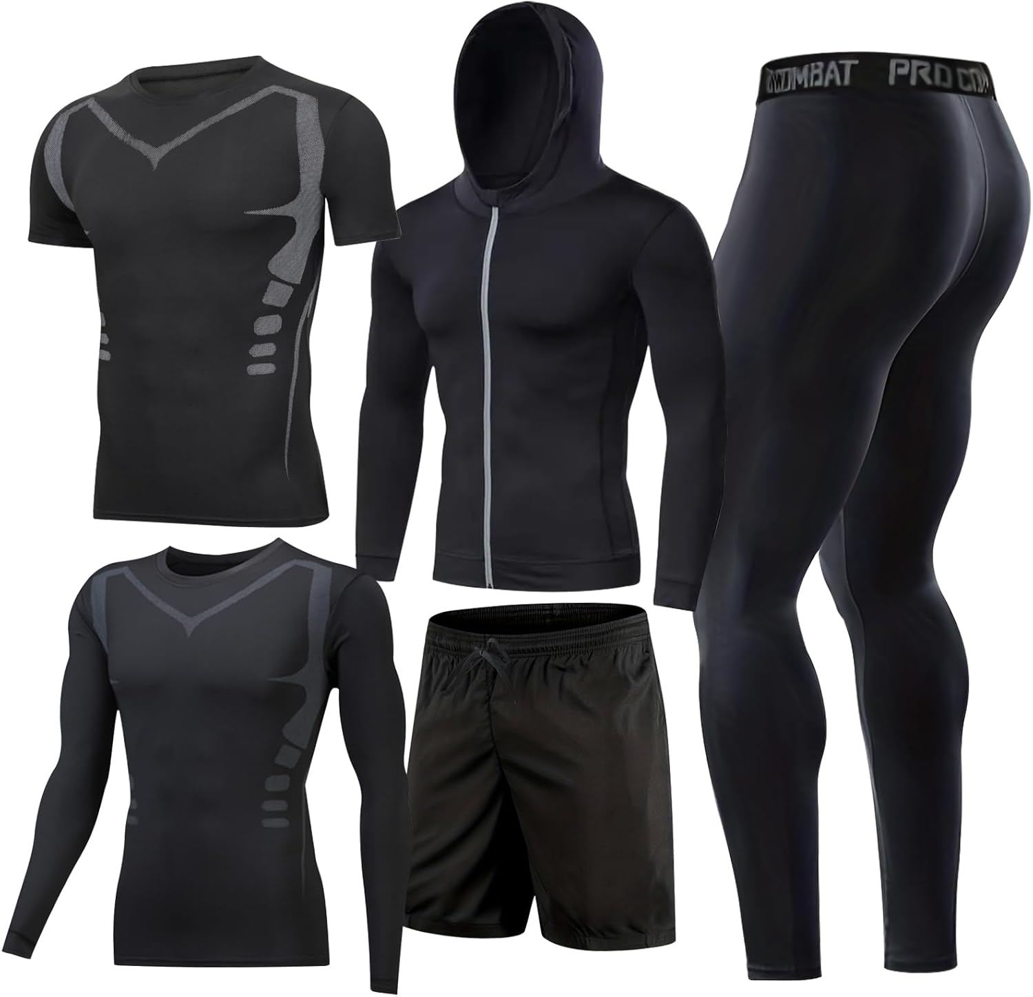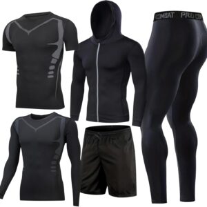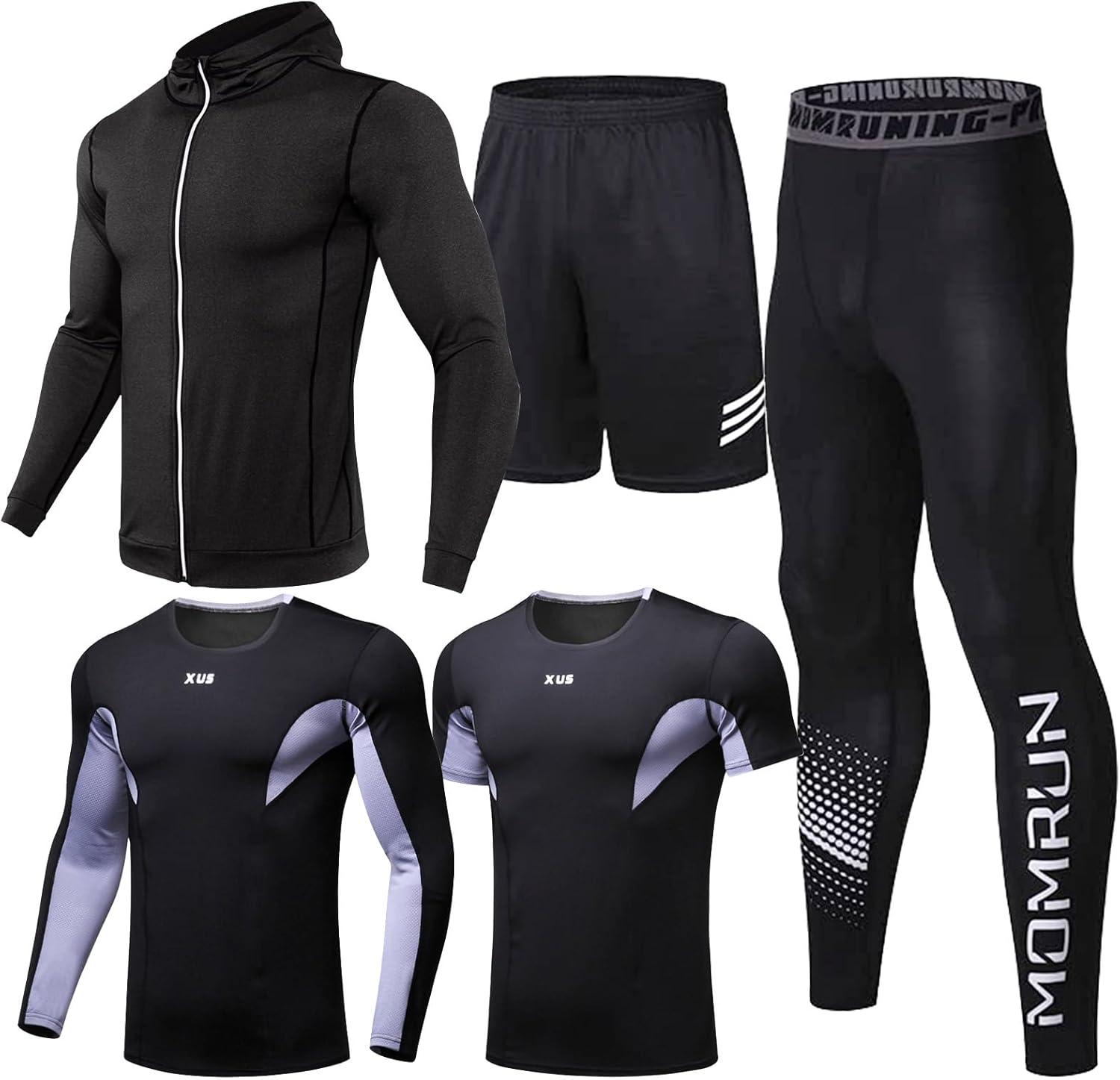 - [5 in 1 Set]—Light jacket+Long sleeves+short sleeves+running shorts+compression leggings.