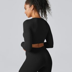 Buttergene Women Workout Sets 2 Pieces Long Sleeve Yoga Outfits Gym Clothes Seamless Ribbed Crop Top High Waist Leggings quantity