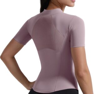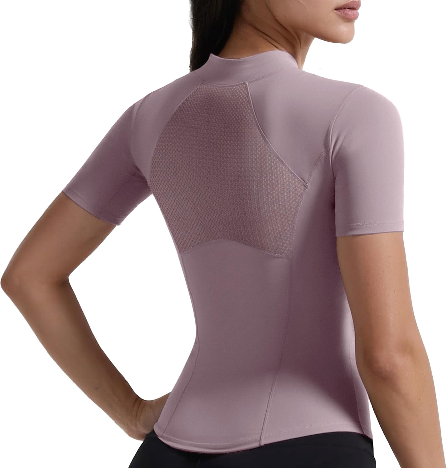 Clbort Women’s Workout Shirts Mesh Breathable Tops Athletic Compression Fit T-Shirt Short Sleeve Gym Tees Quick-Dry Shirts