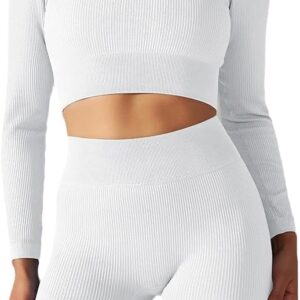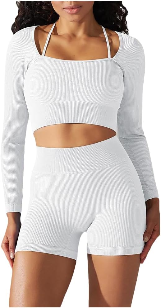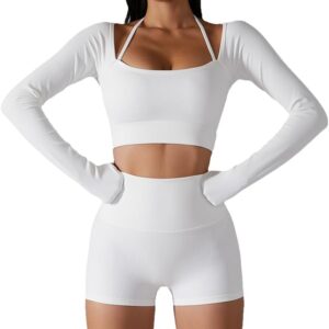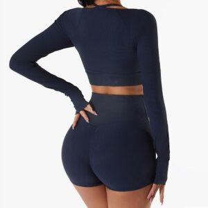 Yoga Solid Color Breathable Quick Dry Sportswear Super Stretch Workout Gym Suit Clothes Women Seamless Short Sleeve Top Waist Shorts Running Set”