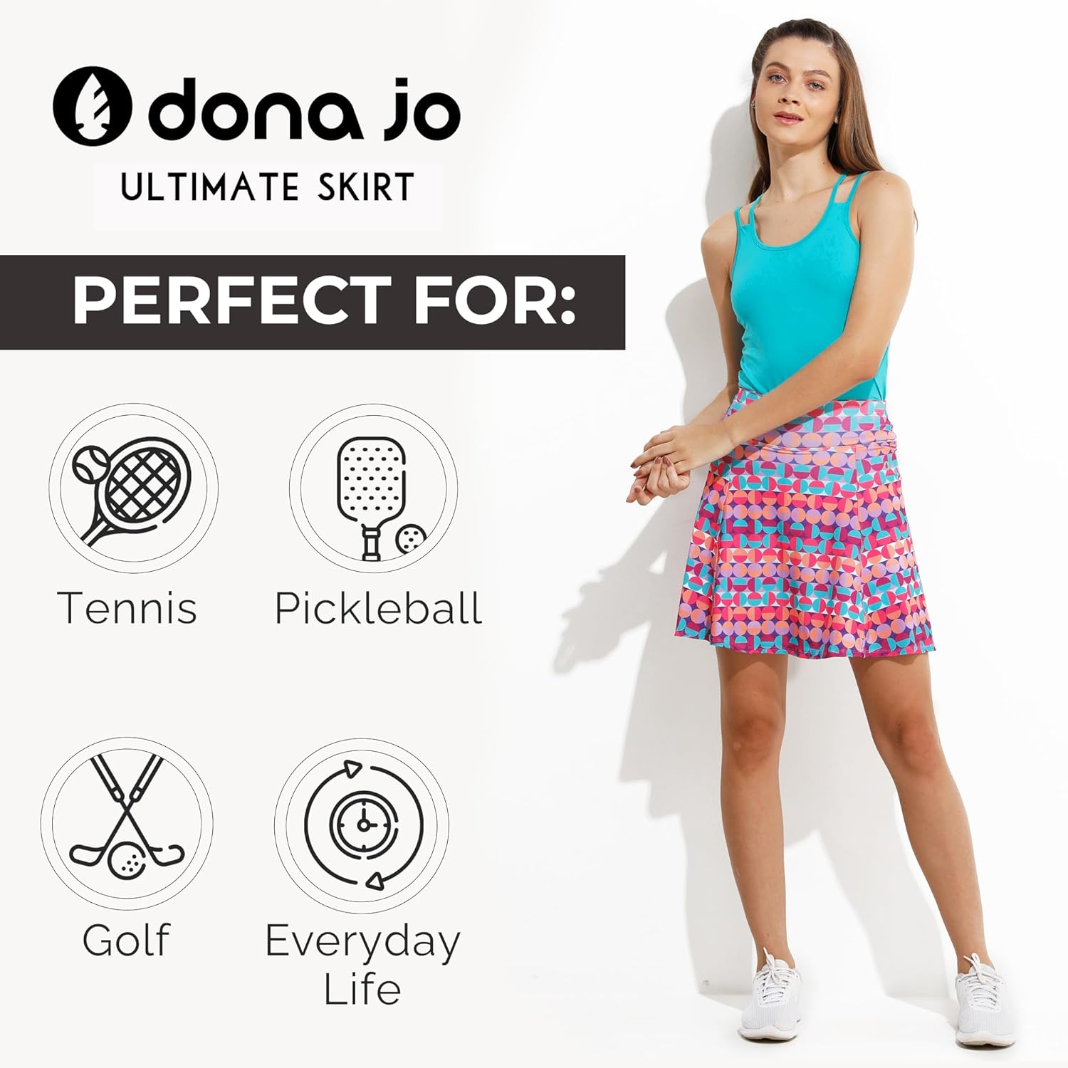 Dona Jo Ultimate Women's Active Performance Dri Fit Skirt - A-line Tennis and Golf Skort w\/Shorts & Pockets for Sports quantity