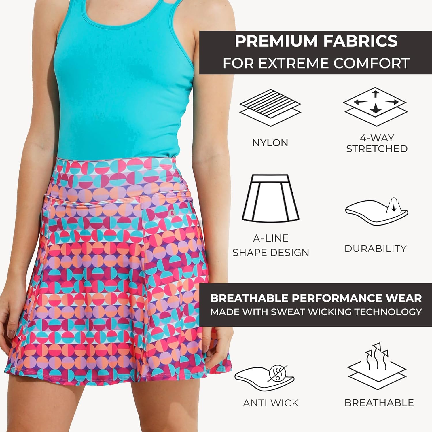 Dona Jo Ultimate Women’s Active Performance Dri Fit Skirt – A-line Tennis and Golf Skort w\/Shorts & Pockets for Sports