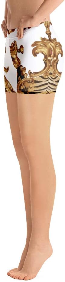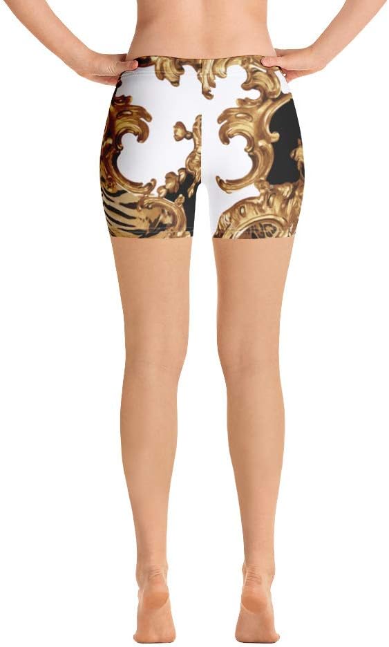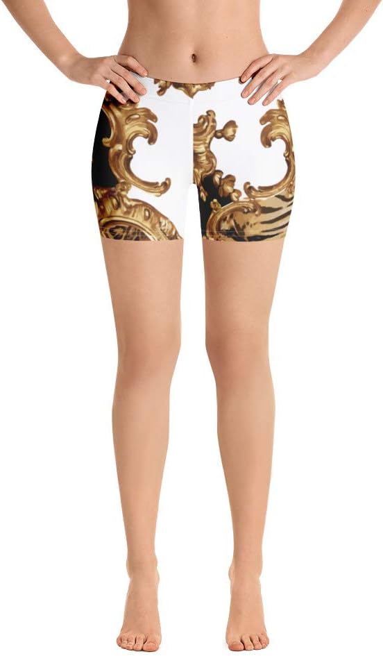 Edwin Vonholy Gym Workout Yoga Shorts for Women Girls White Gilded Gold Baroque Pants