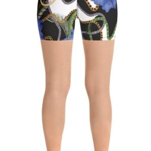 Edwin Vonholy Yoga Shorts for Women Girls High Waisted Pants Blue Flower Fair White