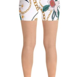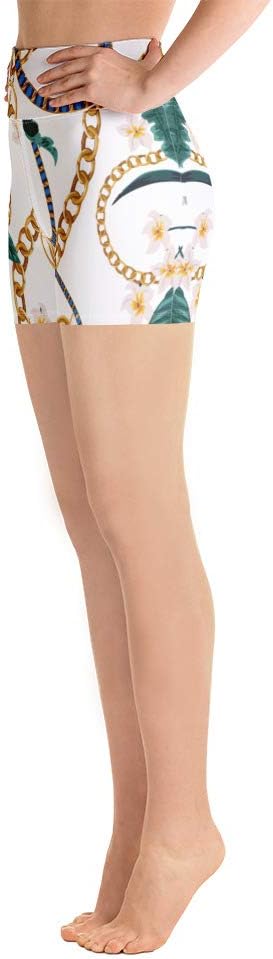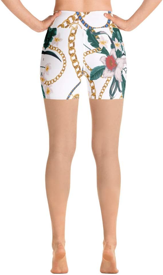 Edwin Vonholy Yoga Shorts for Women Girls High Waisted Pants Flowery Chain White