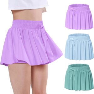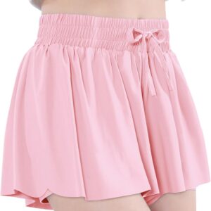 EXARUS Girls Butterfly Shorts Flowy Dance Skirt Cheer Skorts Athletic Tween Clothes Teen Preppy Outfits Flutter Kids