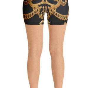 Gym Workout Yoga Shorts for Women Girls Black Floral Gold Baroque Pants