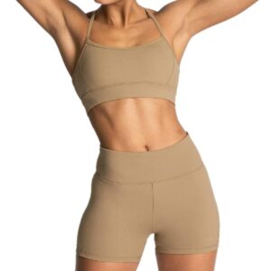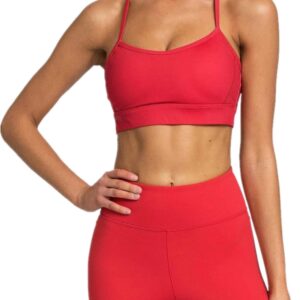 - 【Scoop Neck Open Back Sports Bra】womens workout sets two piece yoga sets, strappy sports bras for women, Designed for low impact exercises such as pilates, yoga and barre, the strappy sports bra combines aesthetic with functionality. Cut from our lightweight, sweat wicking fabric, This seamless sports bra with an open back design enhanced with adjustable cross back straps. Great pairs perfectly with any of the Invincible bottoms for a sleek pilates look.