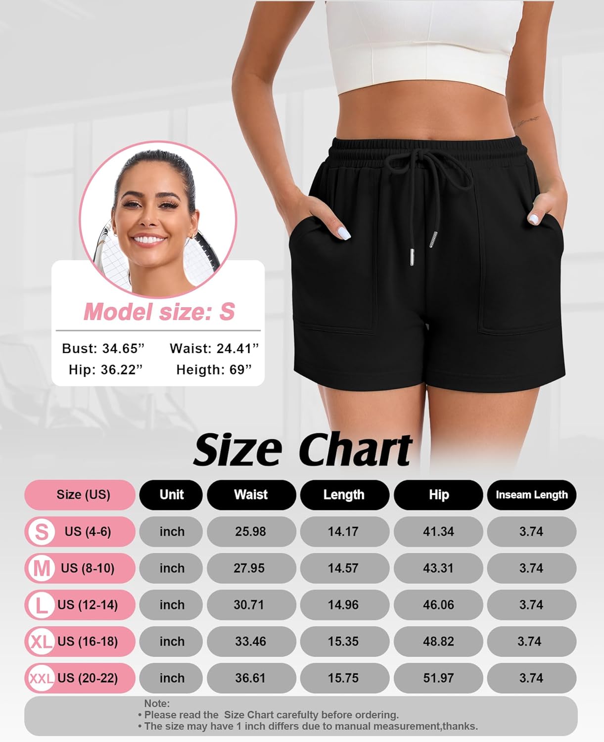 Locoowai 3 Pack Women's Sweat Shorts Lounge Casual with Pockets Drawstring Gym Athletic Shorts High Waist Summer Clothes