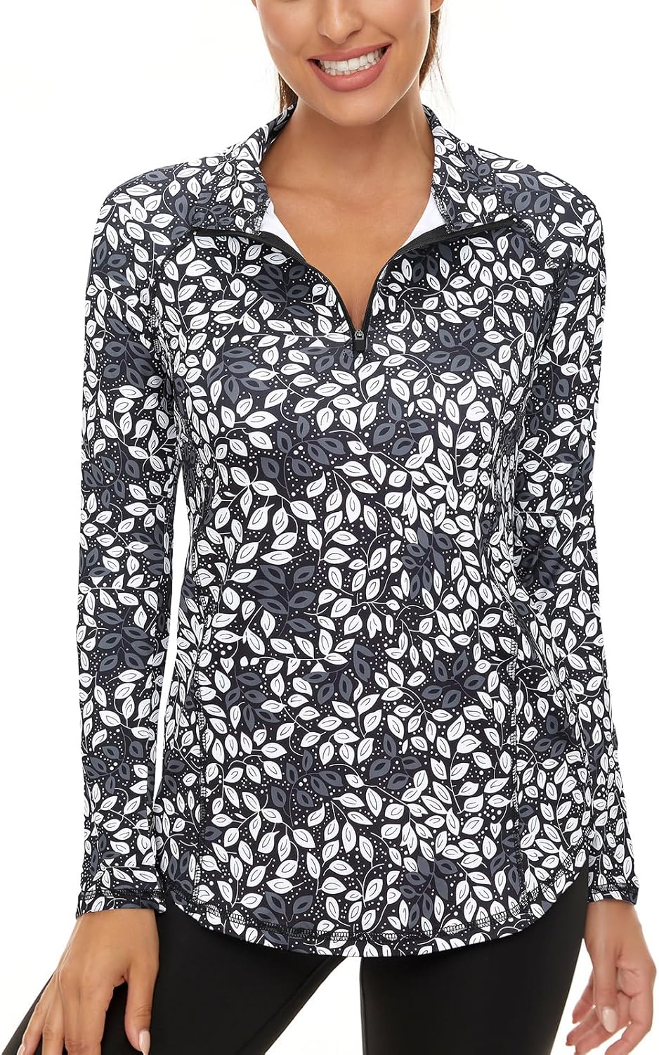 LURANEE Womens UPF 50+ Long Sleeve 1\/4 Zip Pullover Athletic Hiking Running Workout Tops