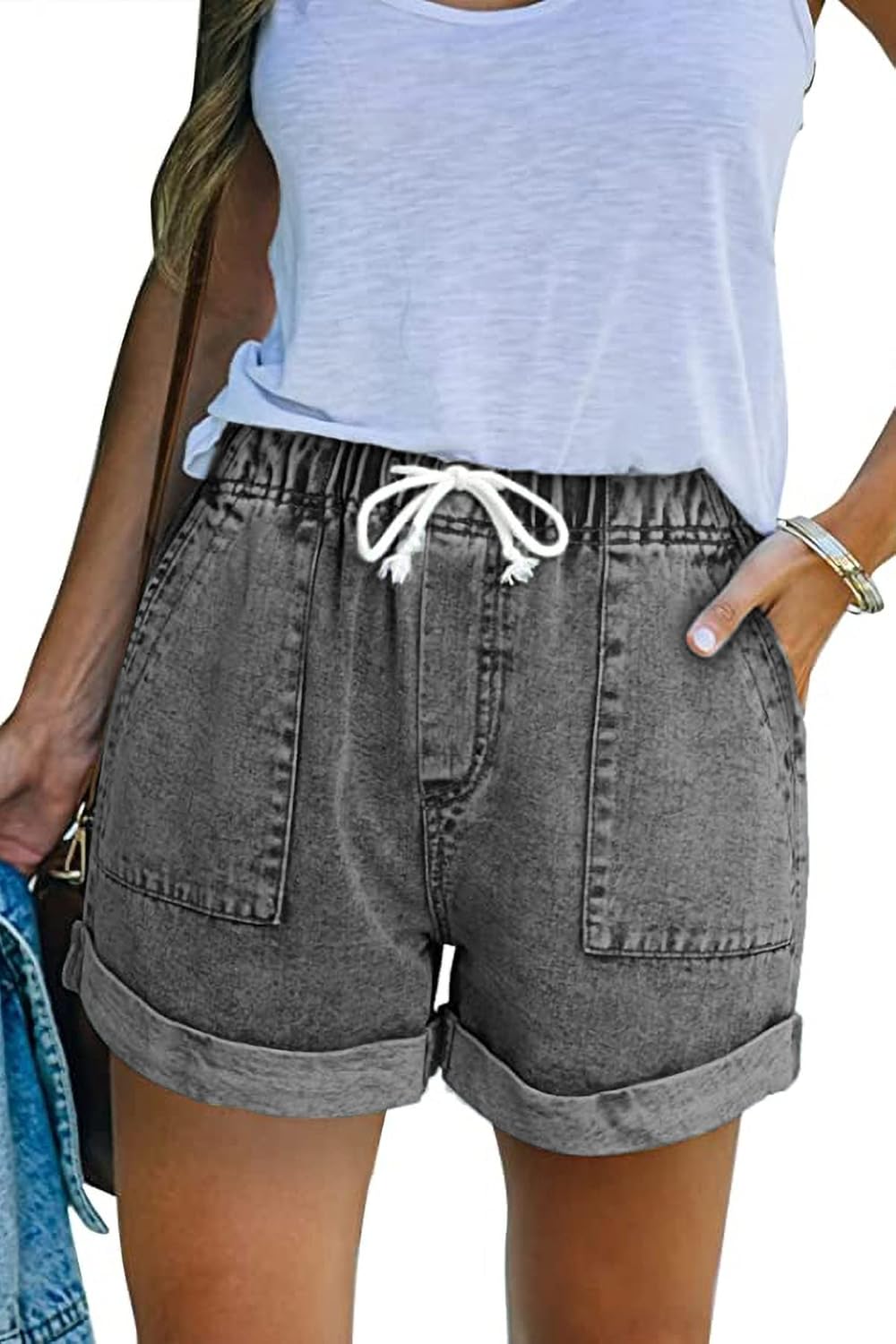 NEYOUQE Women’s Casual Fashion Denim Shorts High Waisted Ripped Short Jeans Stretchy Drawstring Elastic Waist Jean 2025