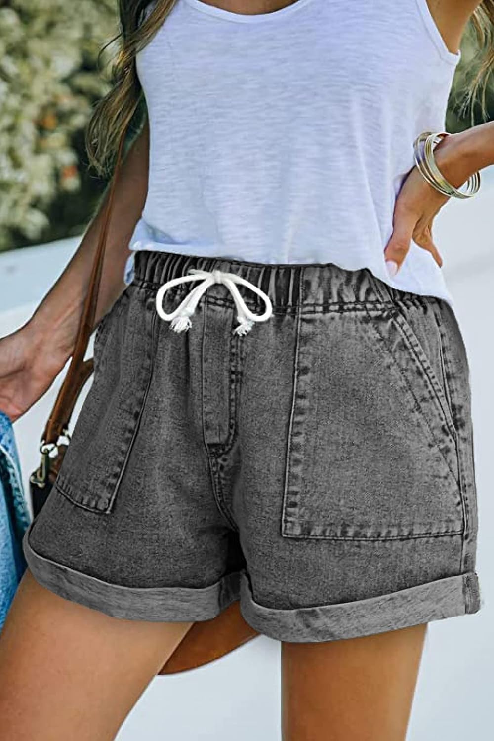 NEYOUQE Women's Casual Fashion Denim Shorts High Waisted Ripped Short Jeans Stretchy Drawstring Elastic Waist Jean 2025 quantity