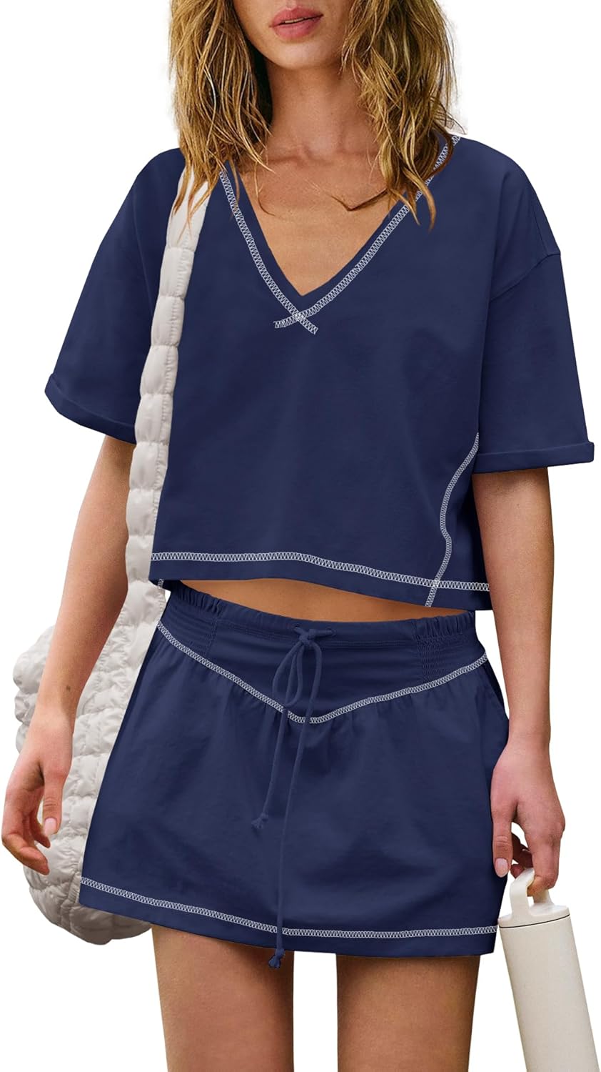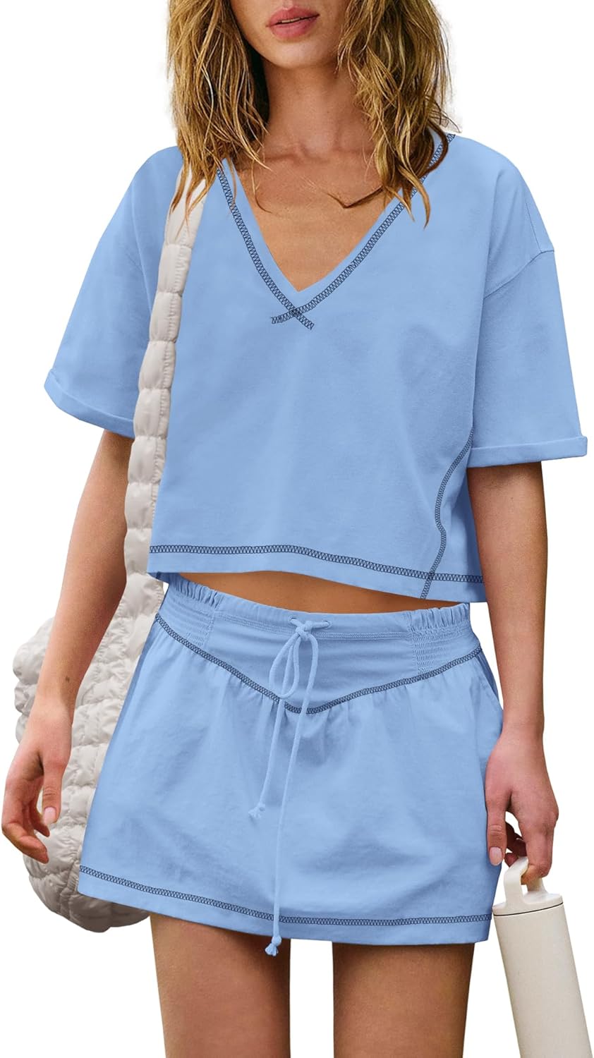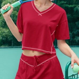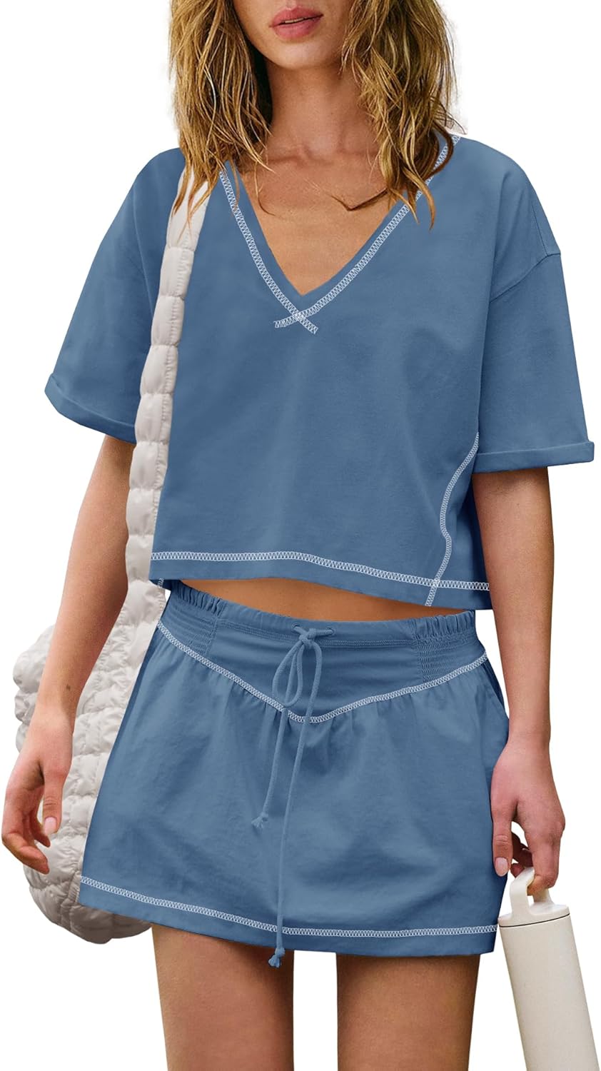 Women Summer 2 Piece Sets Short Sleeve Workout Skirt Sets