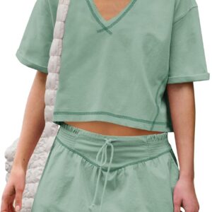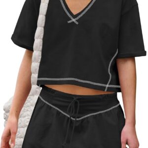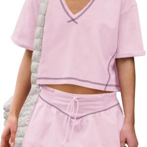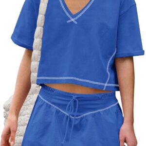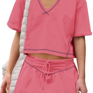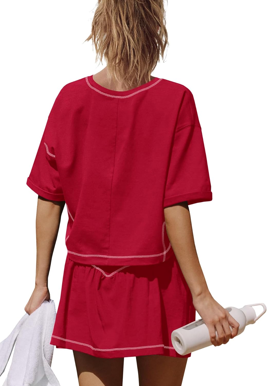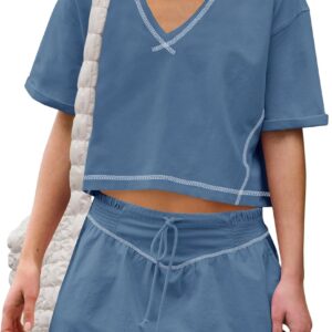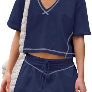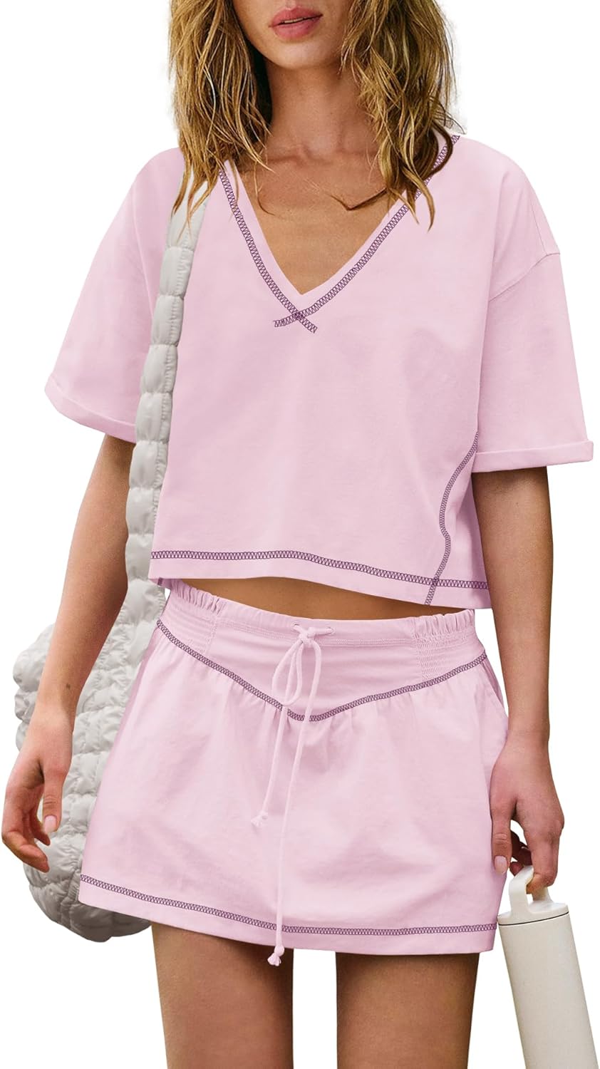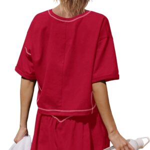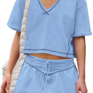 Women Summer 2 Piece Sets Short Sleeve Workout Skirt Sets