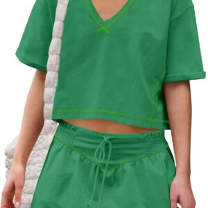 Summer Athletic Outfits Short Sleeve Crop Tops and Skirt Set