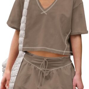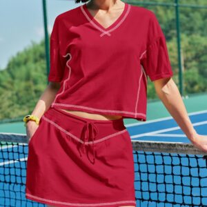 Womens 2 Piece Workout Sets Athletic Outfits Tops and Skort Set