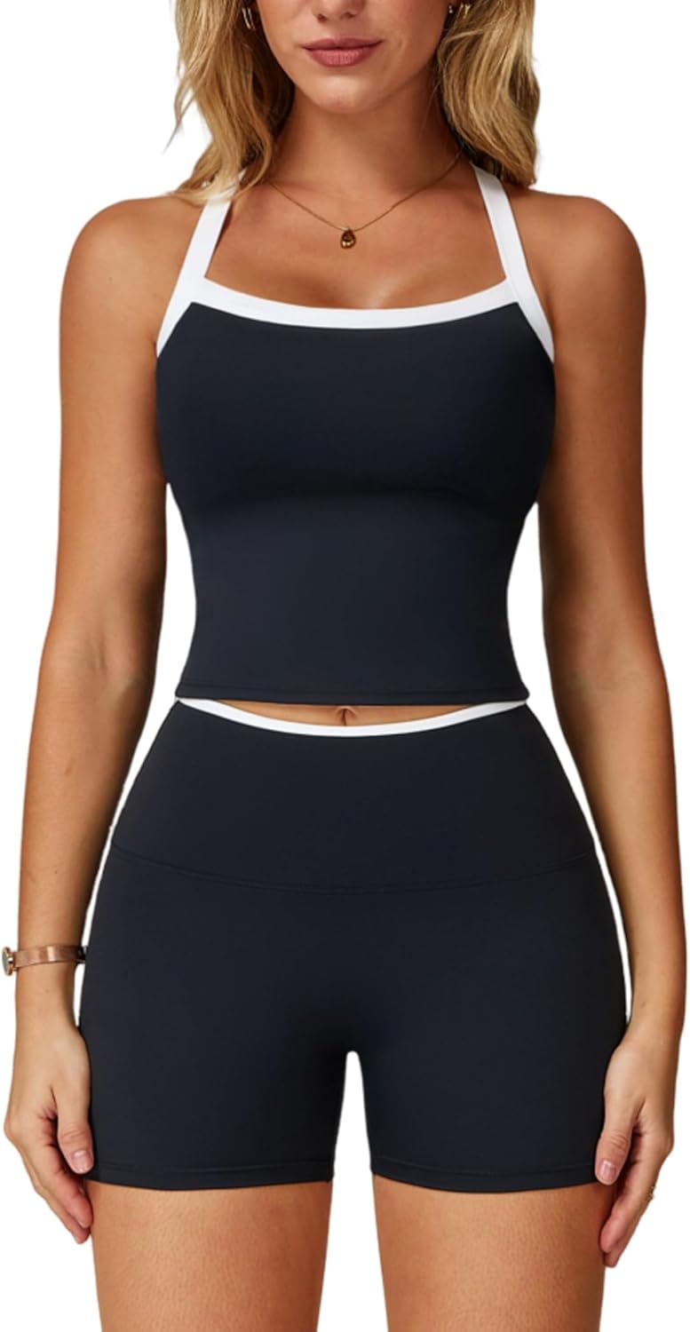 QBGJTD Two Piece Workout Sets For Women Tank Top Matching High Waist Booty Lifting Shorts Gym Yoga Active Wear Outfits