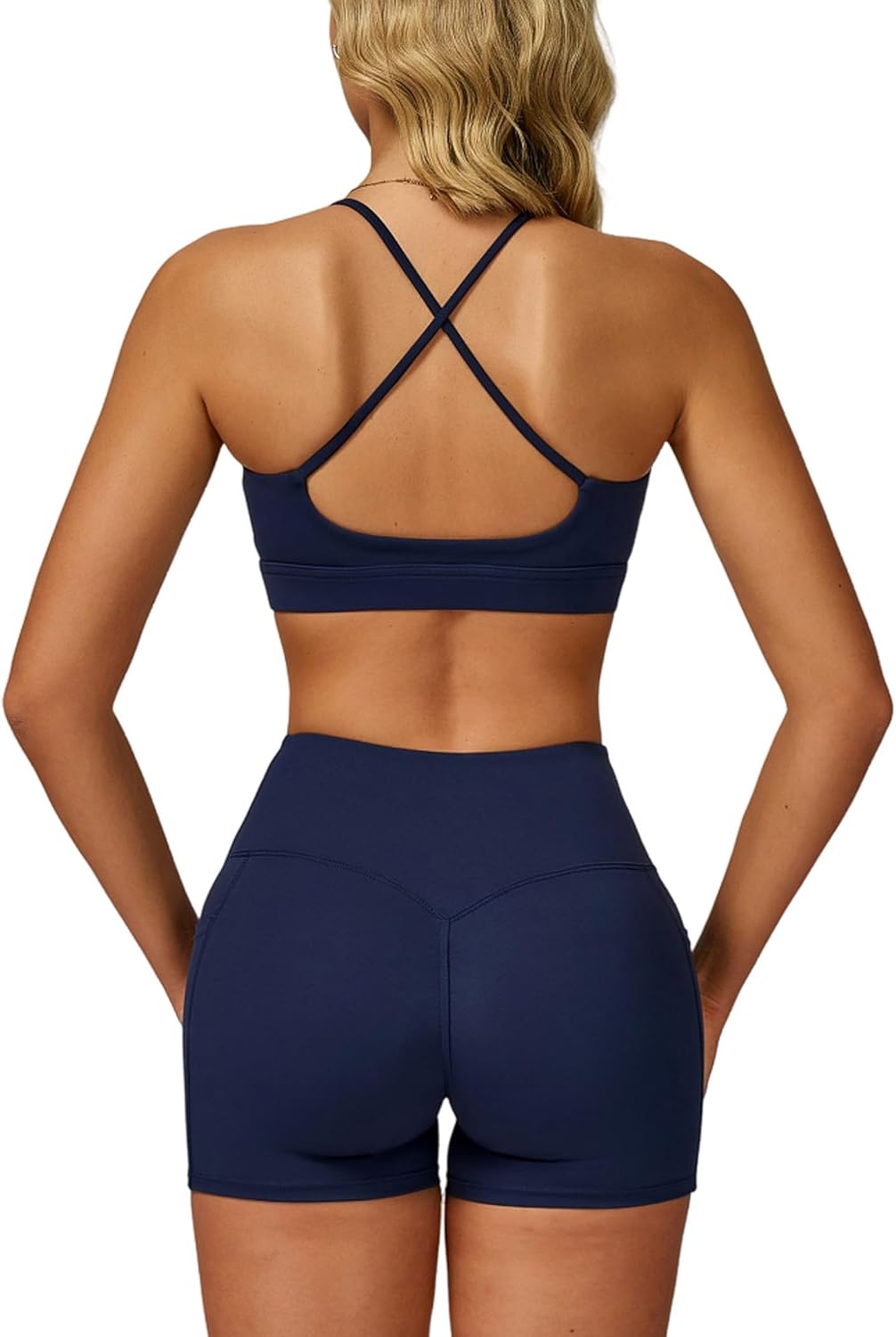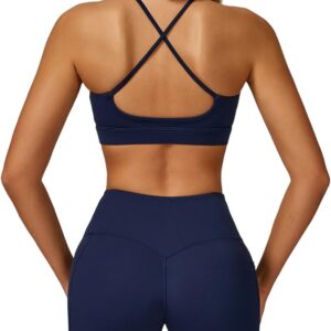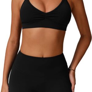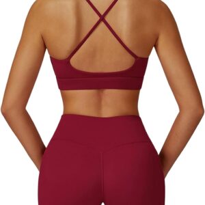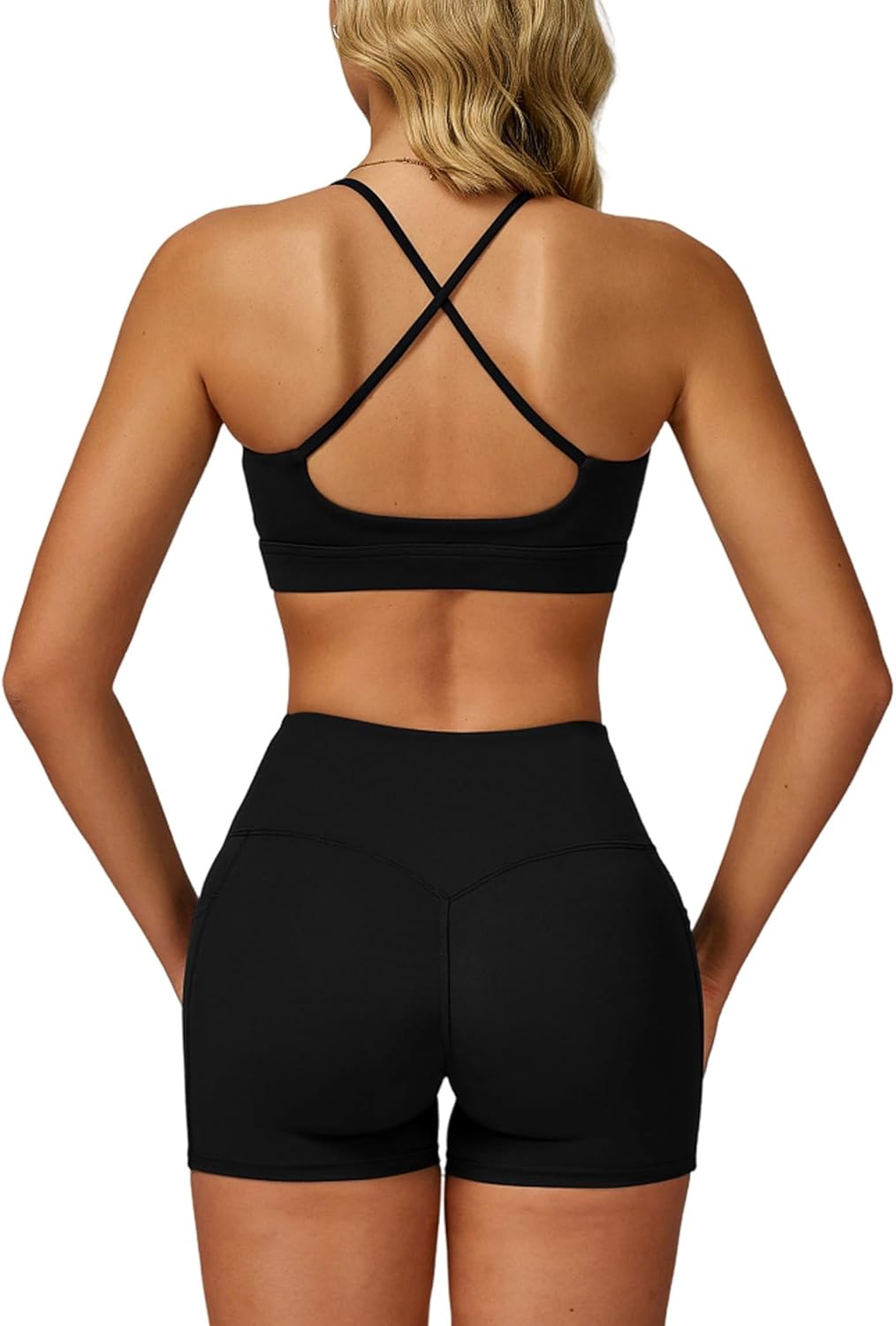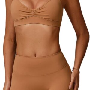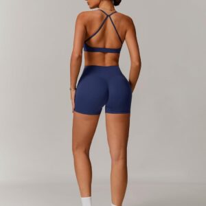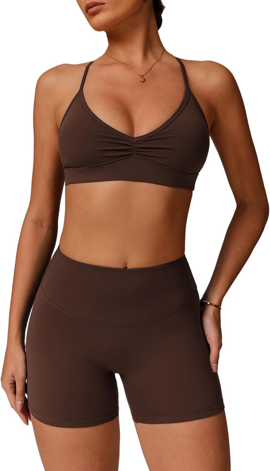 QBGJTD Women Two Piece Workout Sets Support Ruched Cross Back Sports Bras Matching Booty Lifting Shorts Gym Yoga Outfits