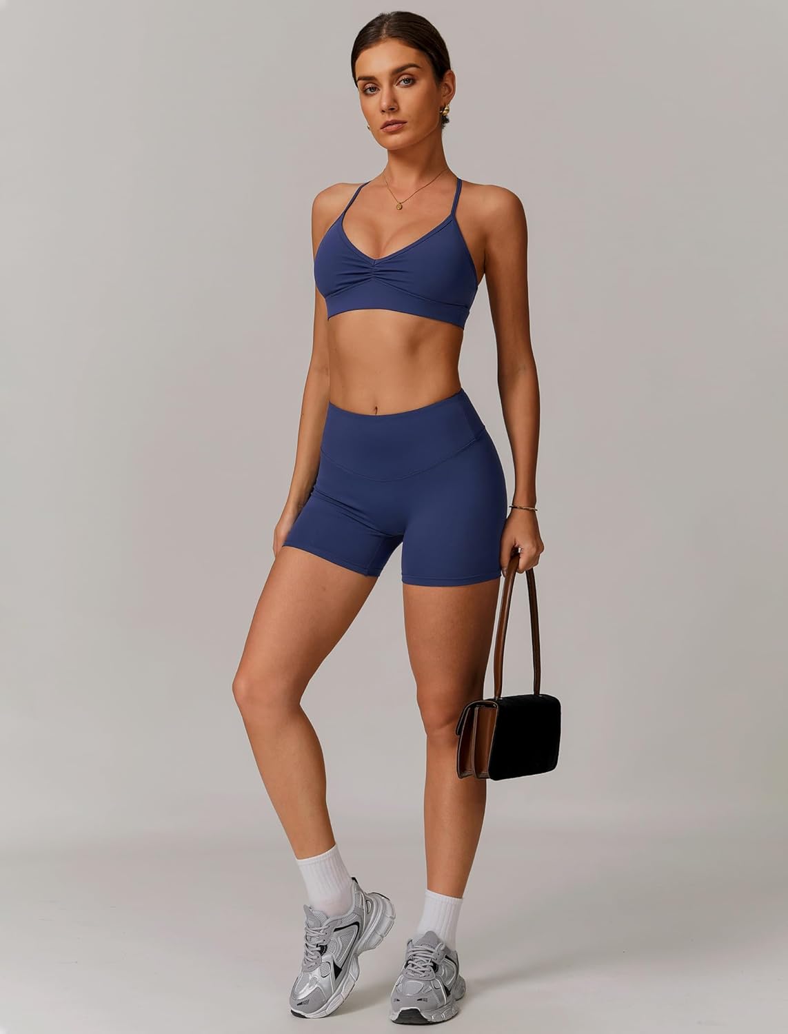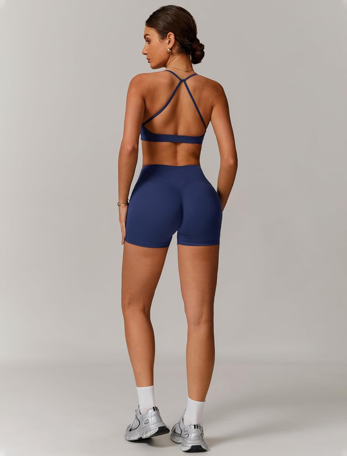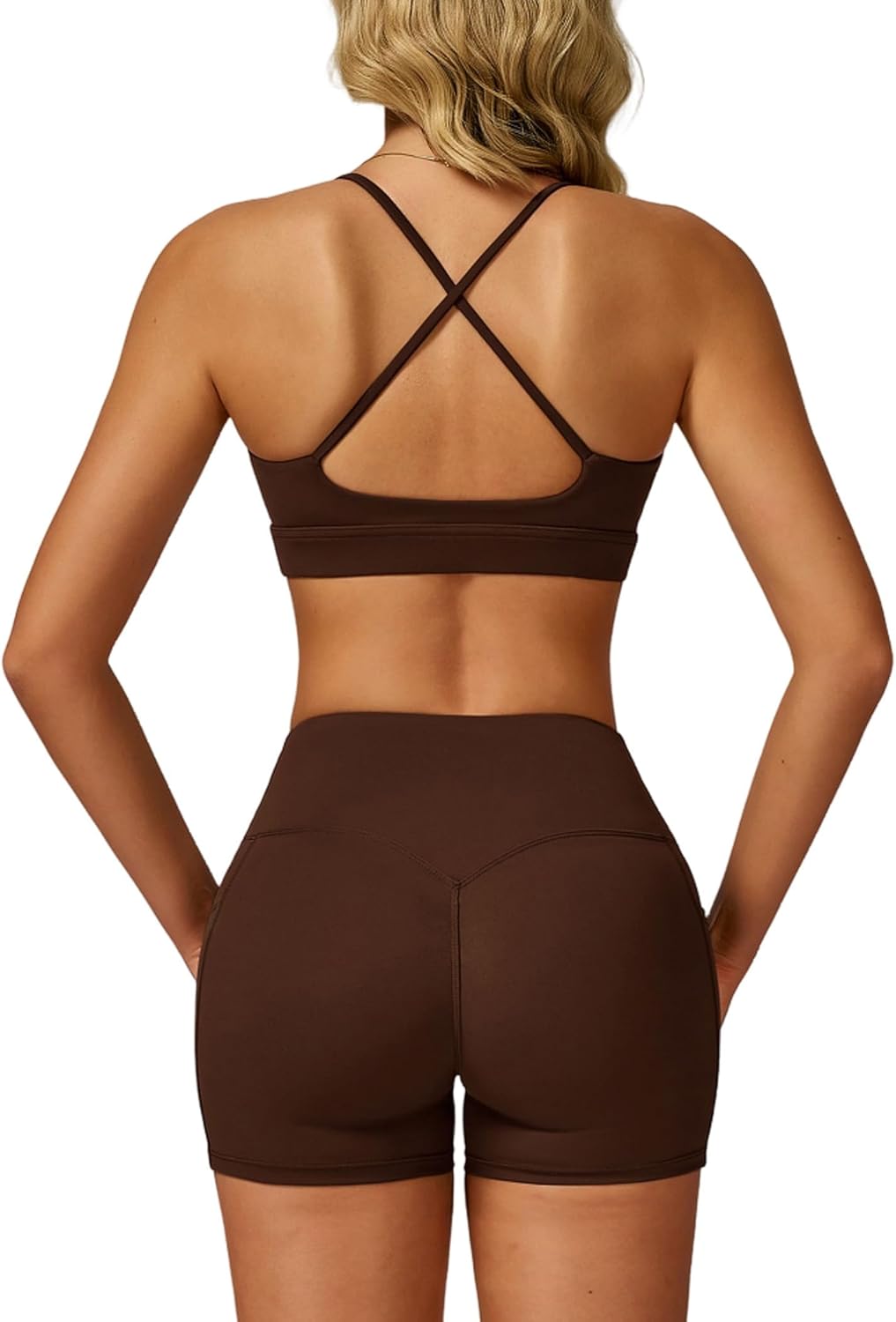 QBGJTD Women Two Piece Workout Sets Support Ruched Cross Back Sports Bras Matching Booty Lifting Shorts Gym Yoga Outfits