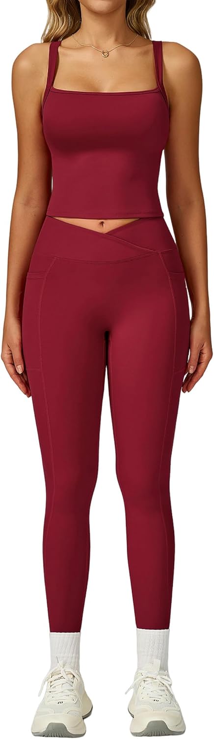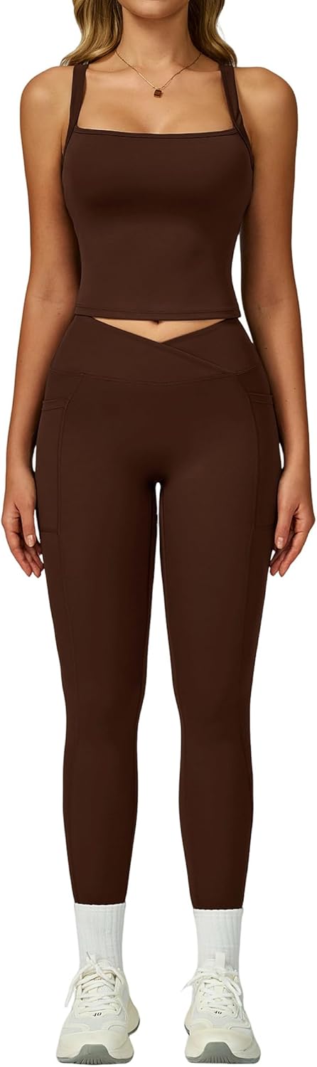 QBGJTD Womens Workout Sets Two Piece Spaghetti Straps Tank Top Matching High Waist Leggings Gym Work Out Outfits with Pockets quantity