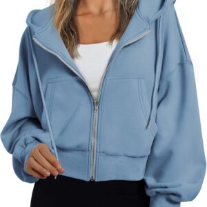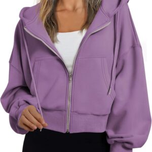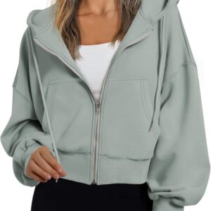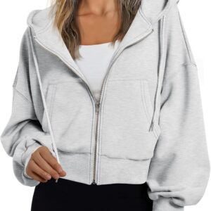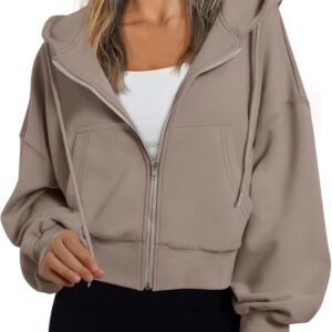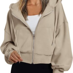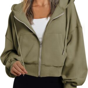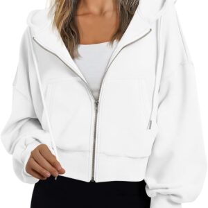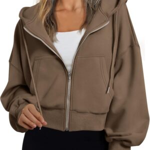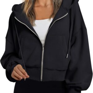 Trendy Queen Hoodies for Women Full Zip Up Cropped Sweatshirts Jackets Casual Comfy Gym Tops Fall Outfits Winter Clothes 2025