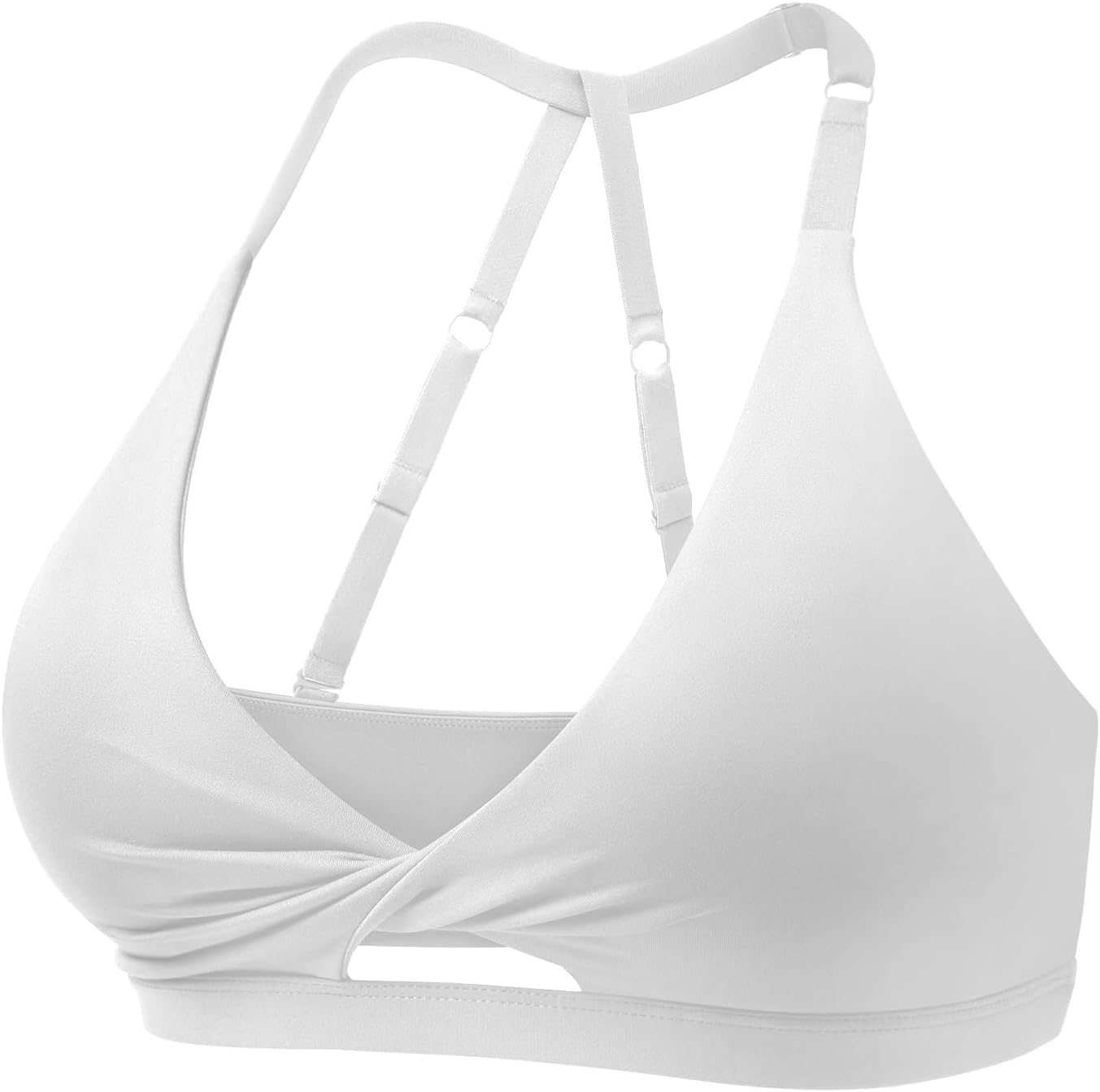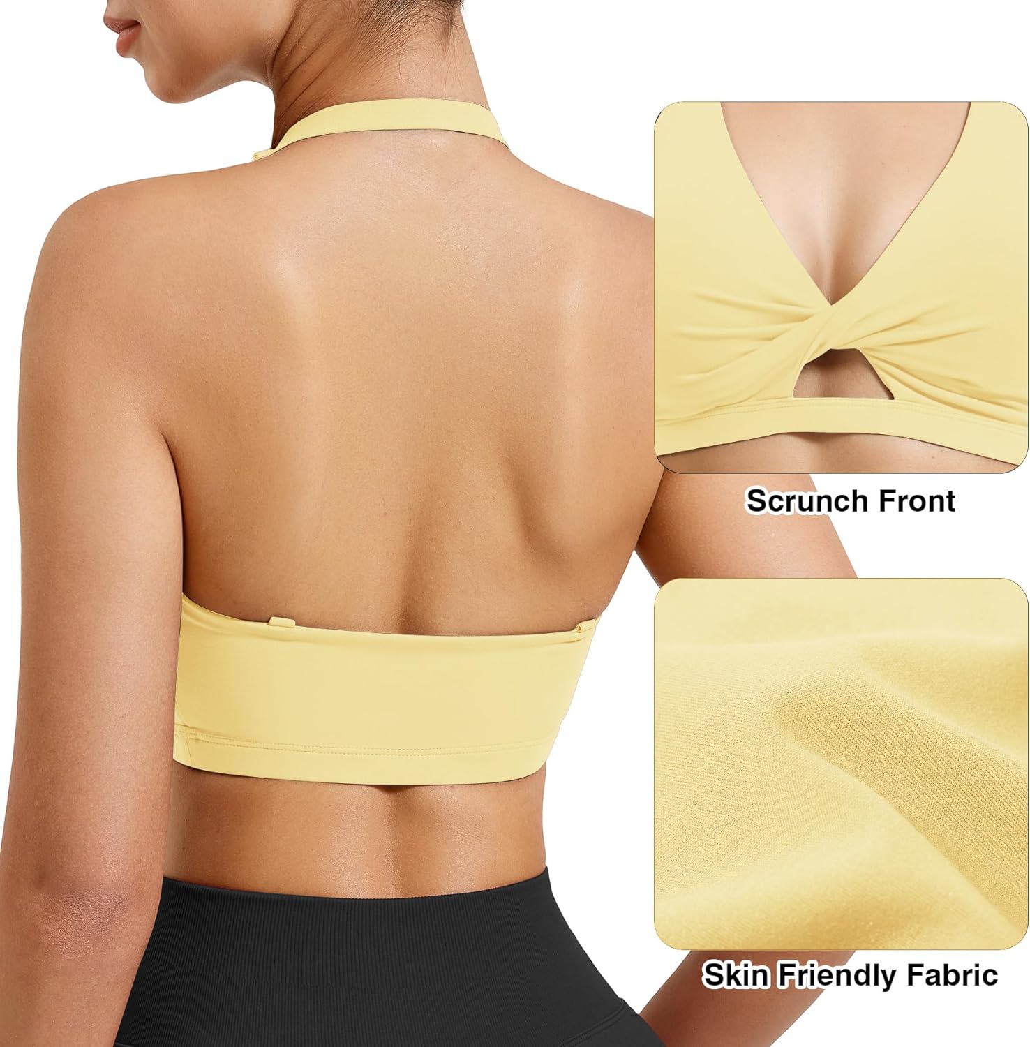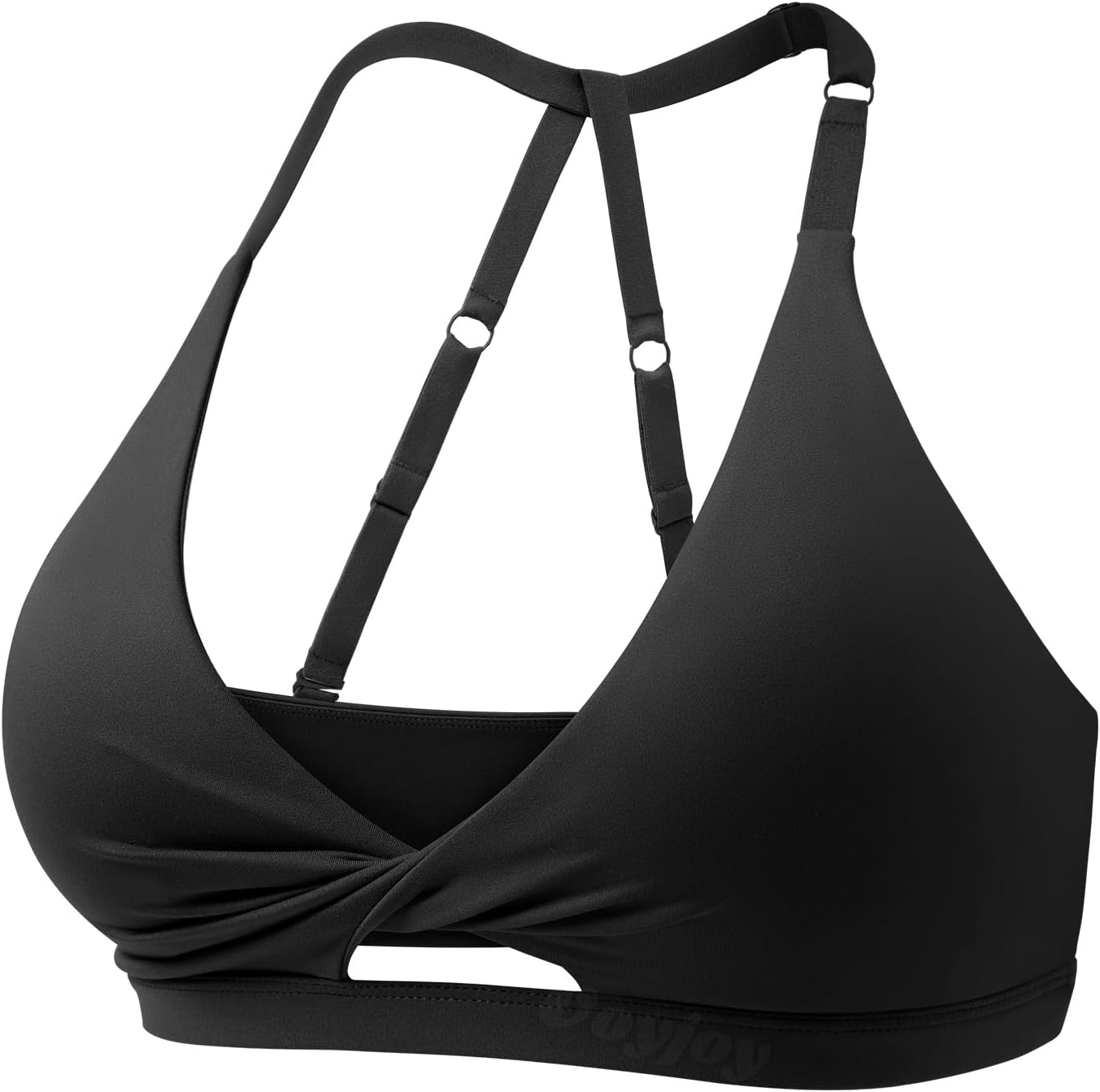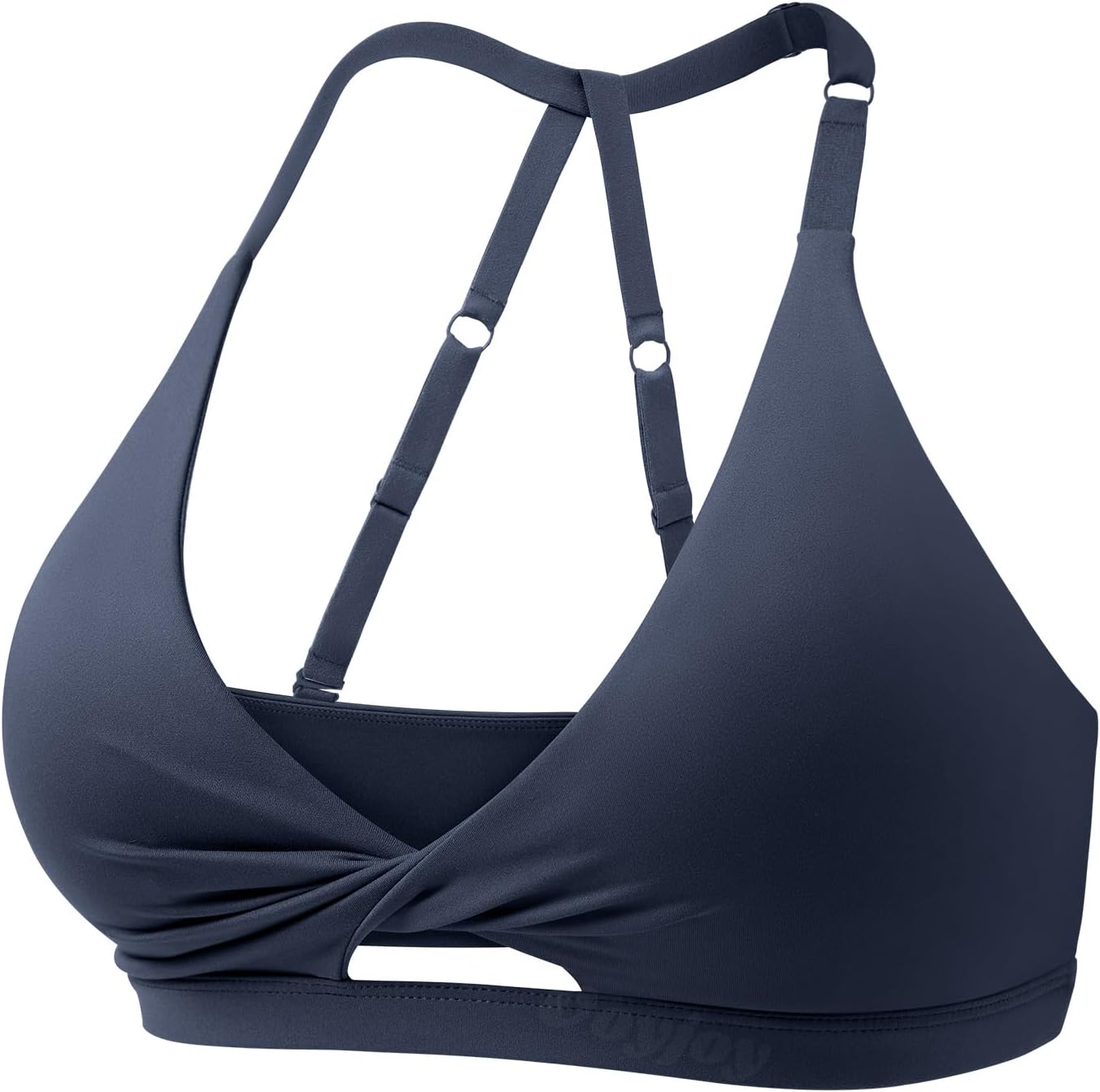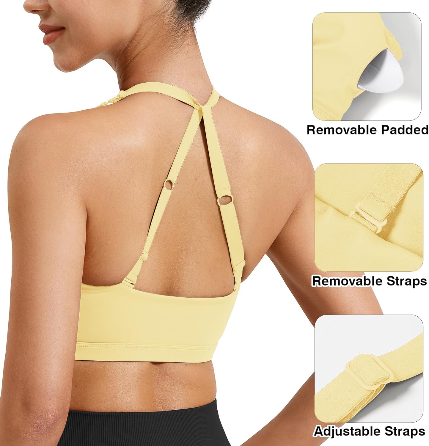 VOYJOY Workout Sports Bras for Women Padded Backless Strappy Fitness Wireless Gym Medium Impact Bra Yoga Crop Top