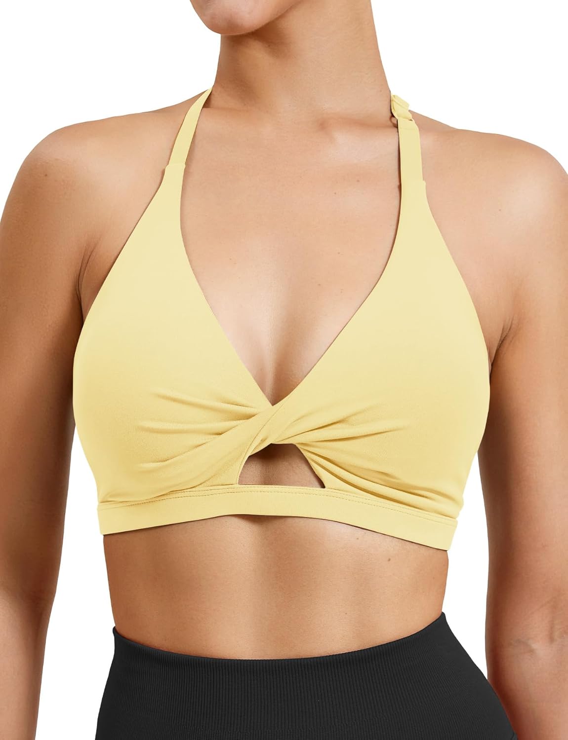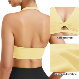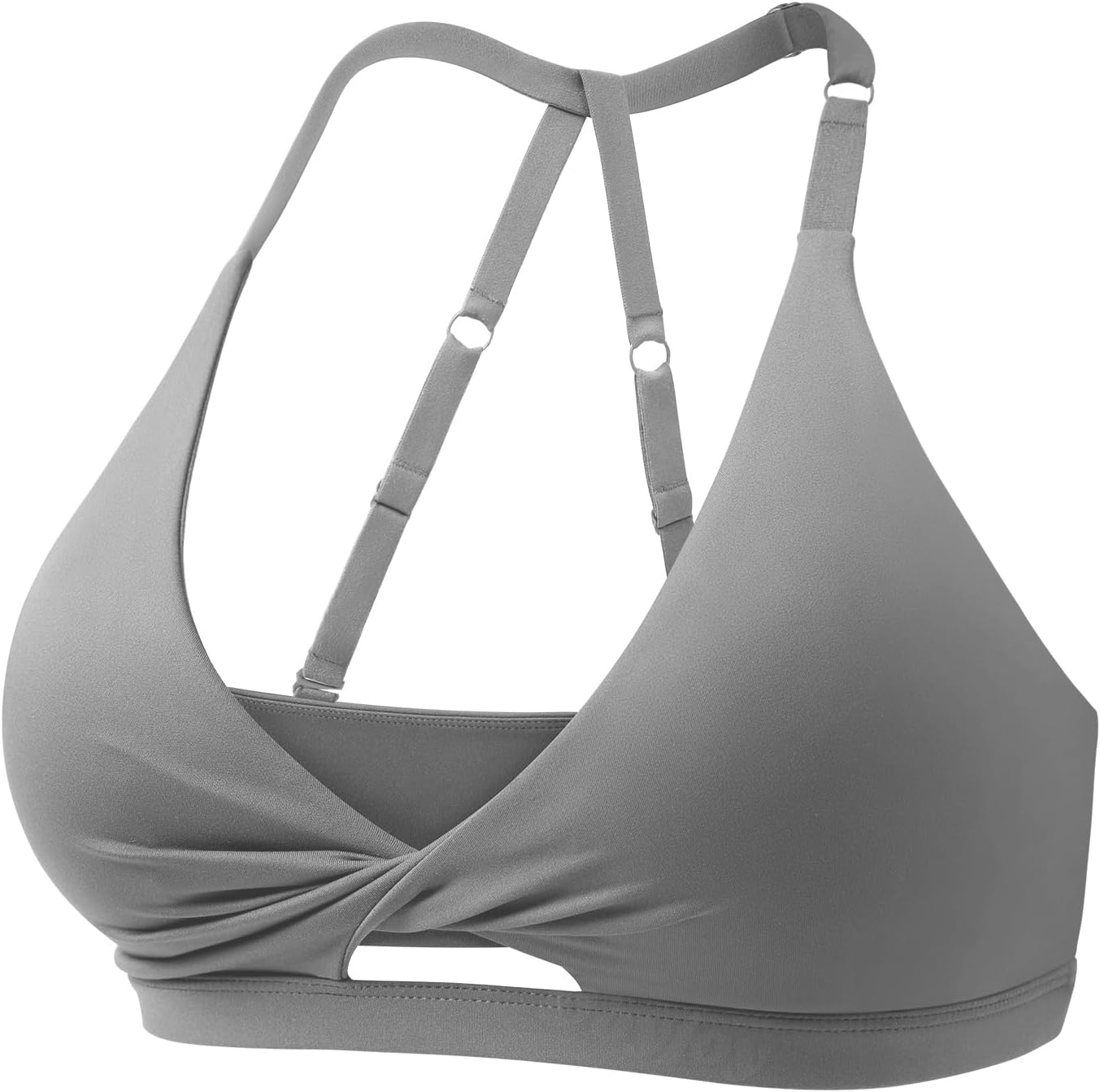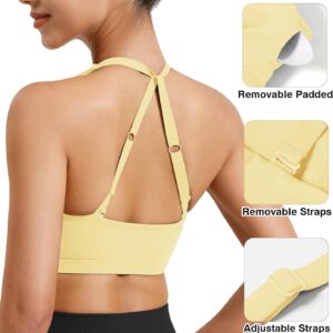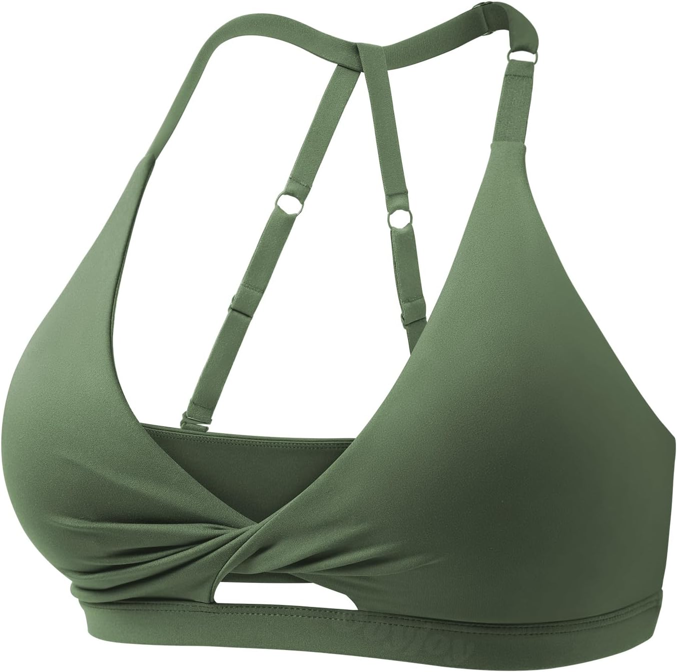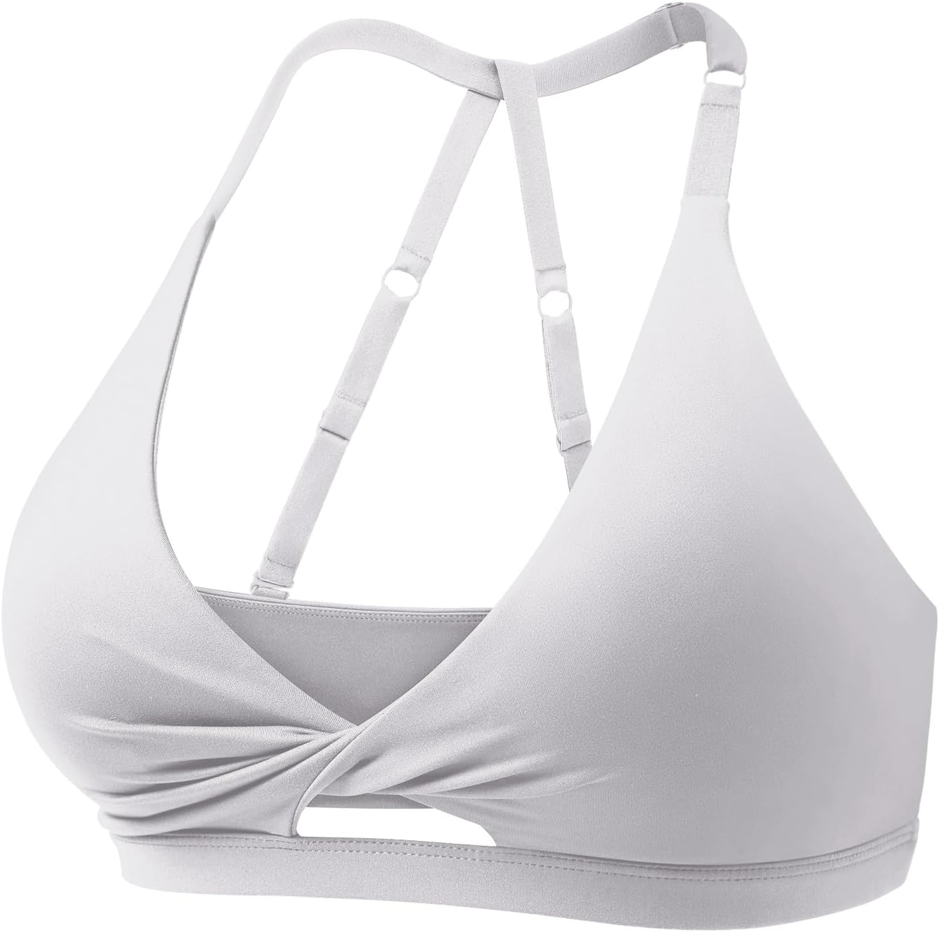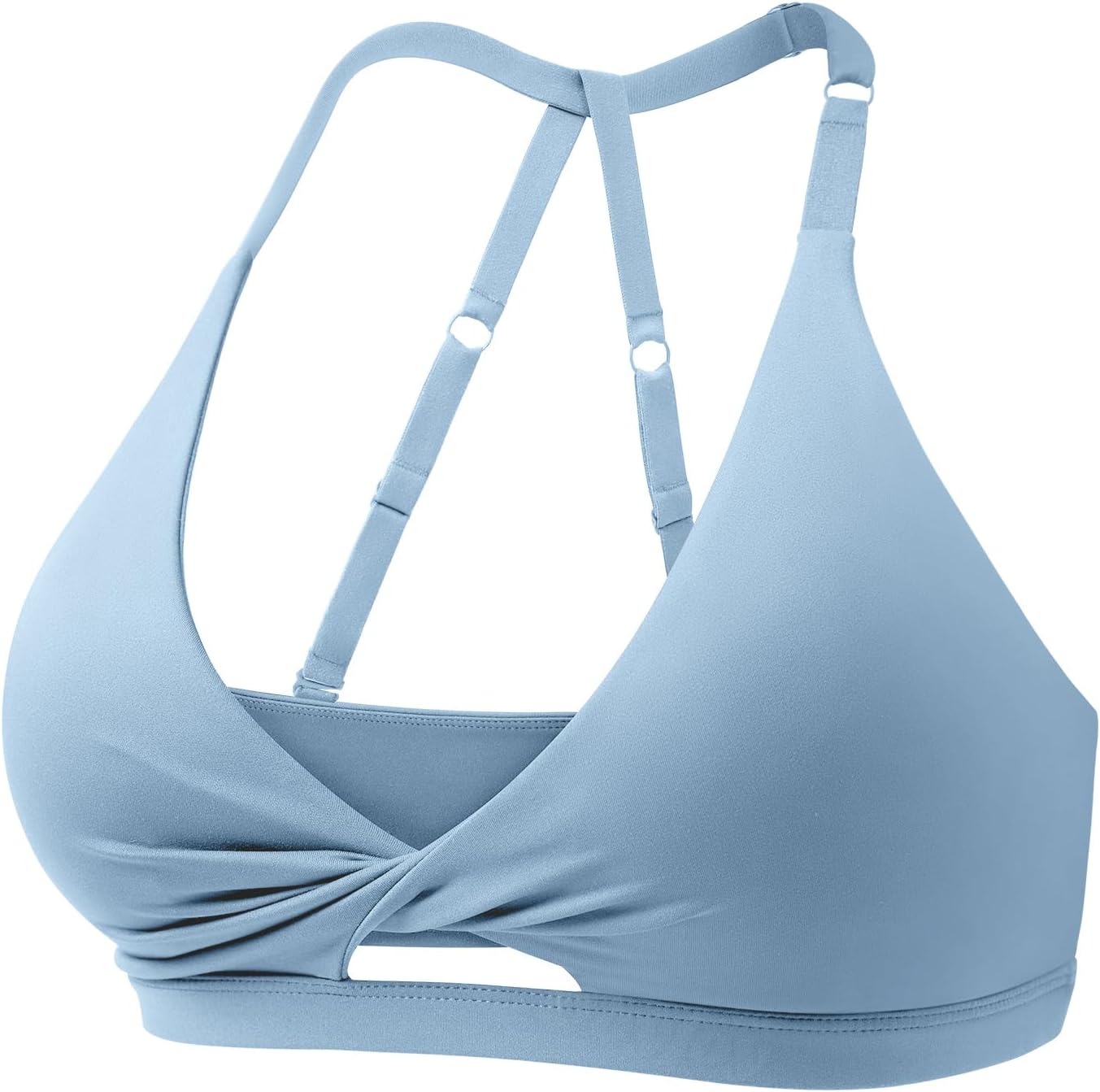 VOYJOY Workout Sports Bras for Women Padded Backless Strappy Fitness Wireless Gym Medium Impact Bra Yoga Crop Top