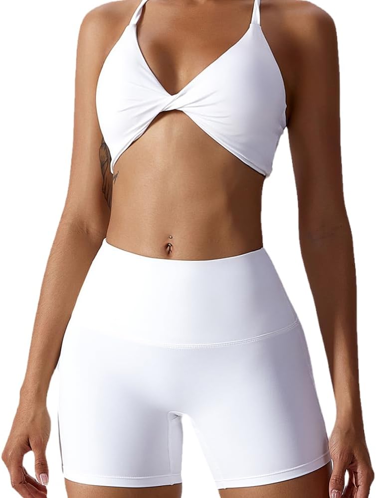 Yoga Solid Color Breathable Quick Dry Sportswear Super Stretch Workout Gym Suit Clothes Women Seamless Short Sleeve Top Waist Shorts Running Set”