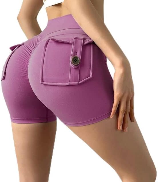 Women Sport High Waist Tights Buttocks Fitness Workout Leggings Push Up Cycling Shorts Gym Clothing with Pocket (as1, Waist, Numeric_48, Short, Purple, Small, Fitted)