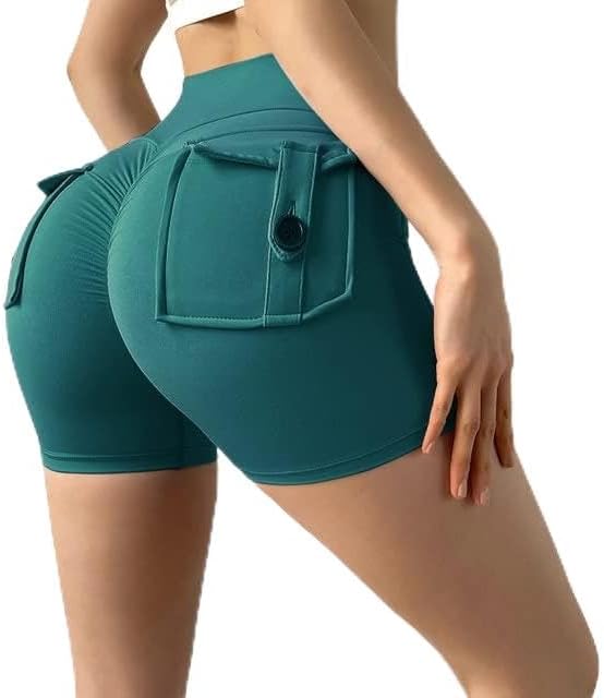Women Sport High Waist Tights Buttocks Fitness Workout Leggings Push Up Cycling Shorts Gym Clothing with Pocket (as1, Waist, Numeric_52, Short, Lake Green, Medium, Fitted)