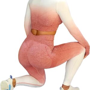 CORPOAMOR is a brand that focuses on providing workout clothing for women. This 2 Piece Set is a great choice for those who are looking for comfortable and stylish workout gear that can also be worn on a comfy day out. The set includes a long sleeve top with thumbholes and comfortable crew neck as well as leggings with tummy control and butt lift. all made from flexible and ribbed breathable fabric in an ombre gradient finish