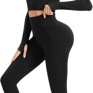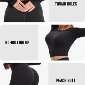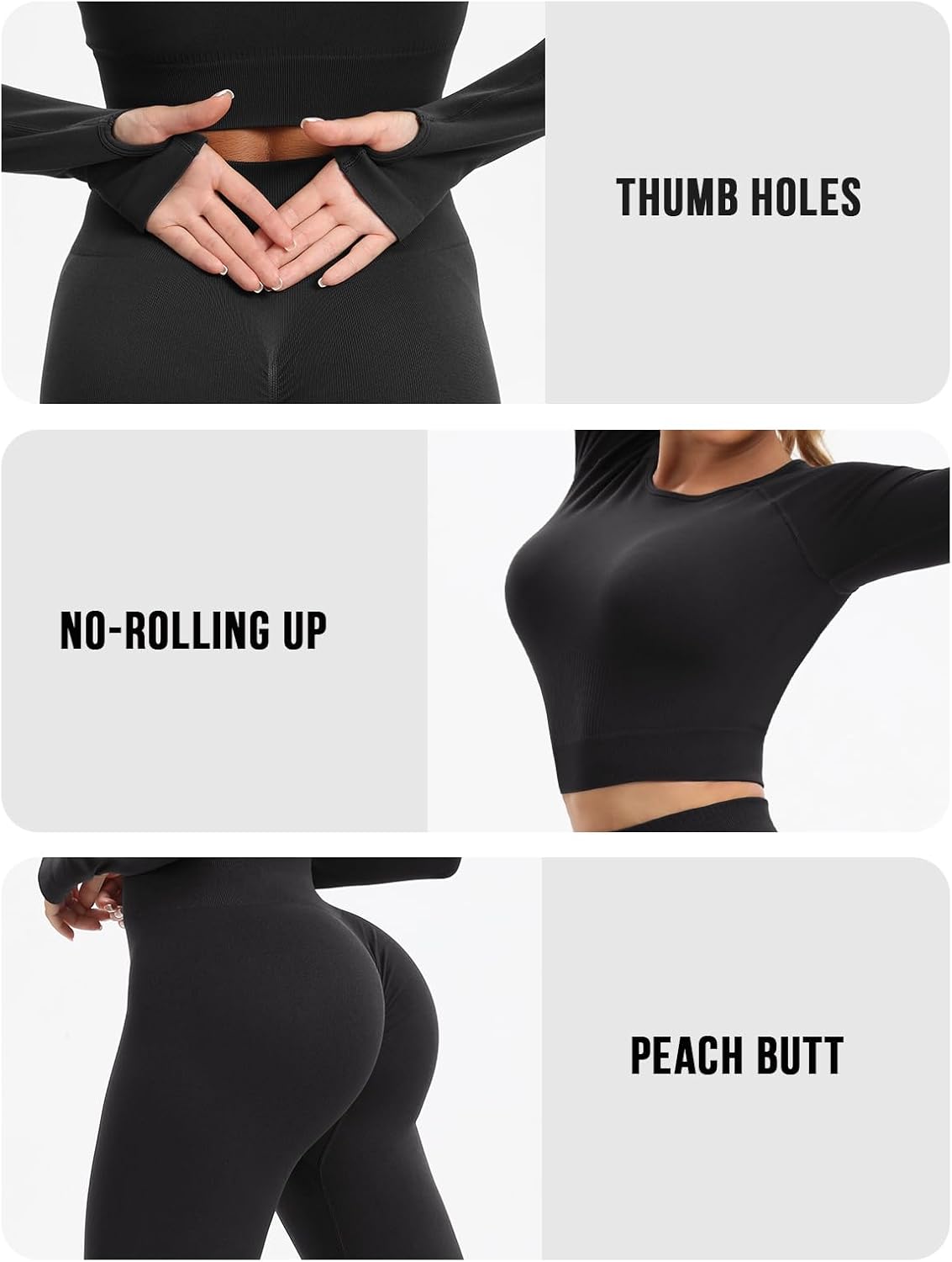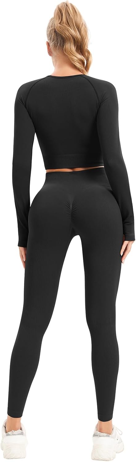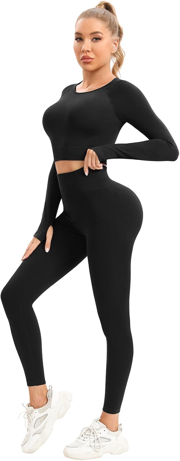 Workout Outfit Women 2 Piece Long Sleeve Crop Top High Waist Yoga Leggings Sets
