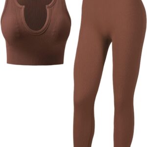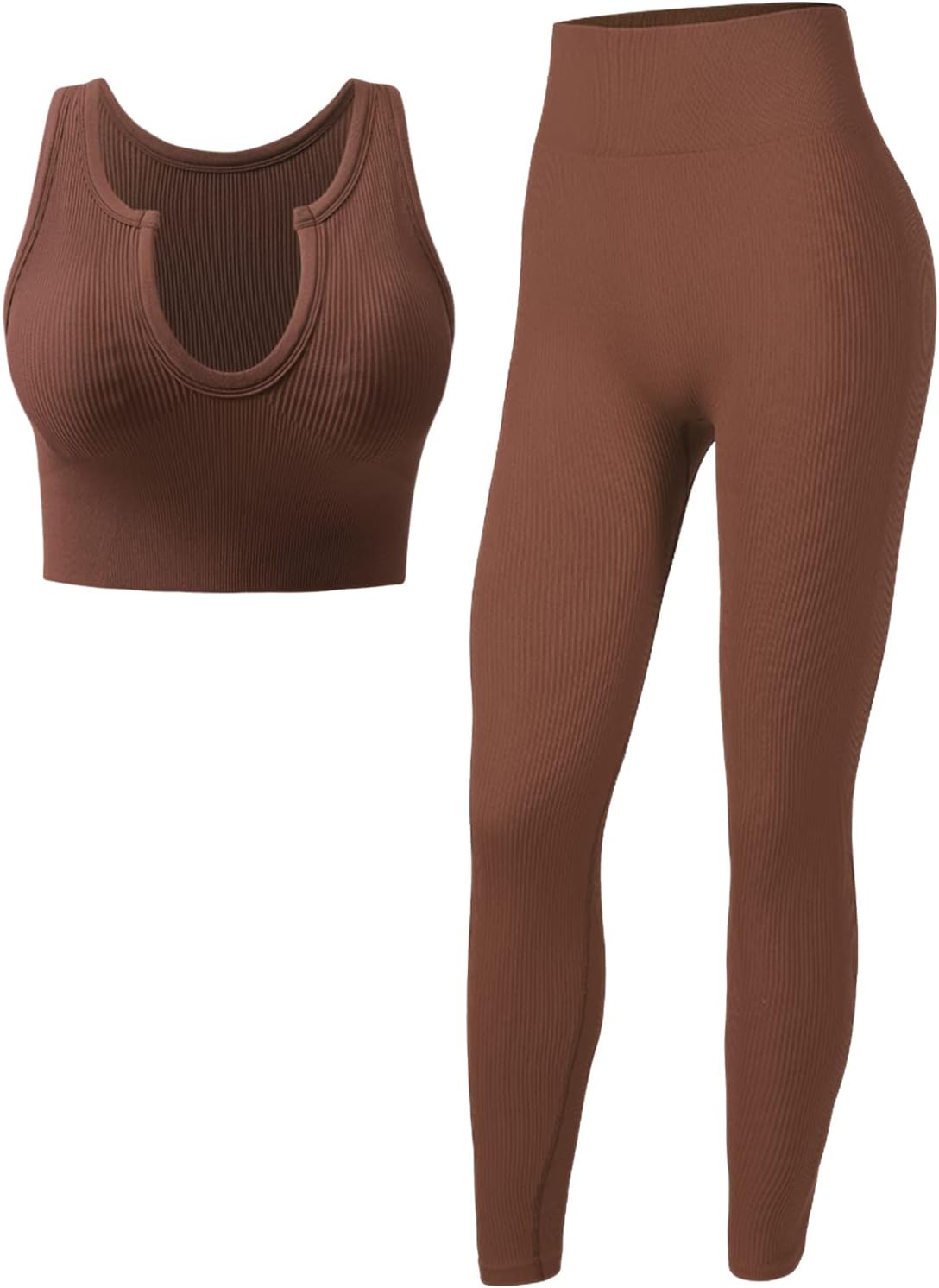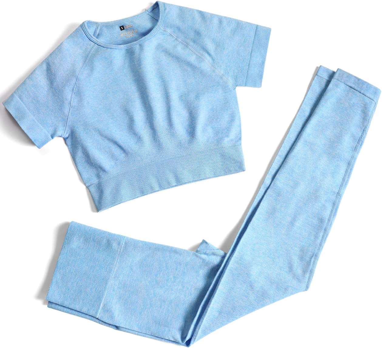 Workout Sets for Women 2 Piece High Waist Seamless Leggings Crop Top Yoga Outfit