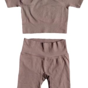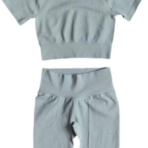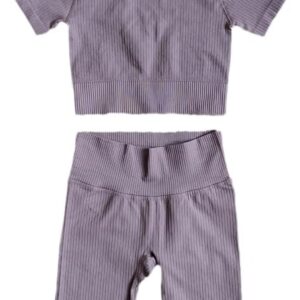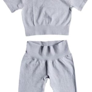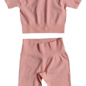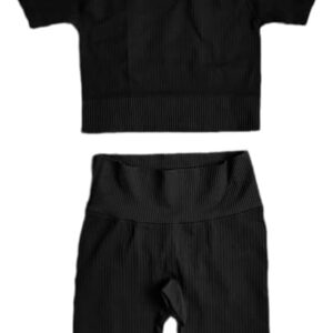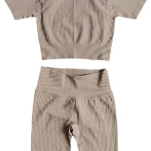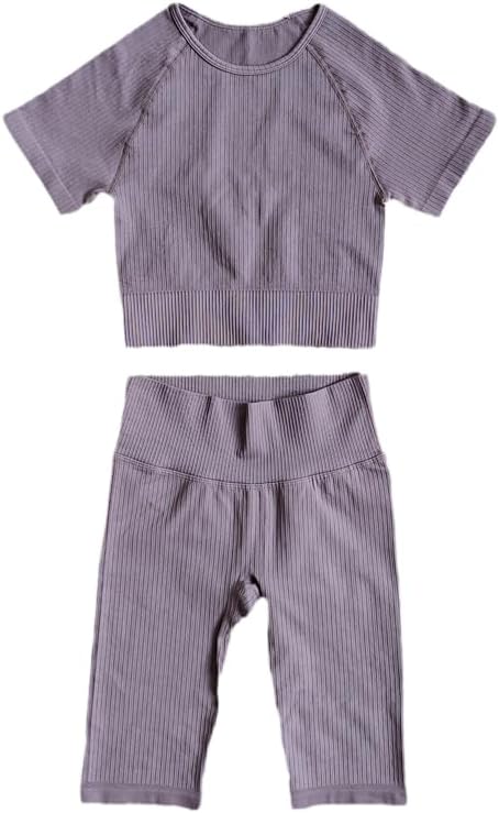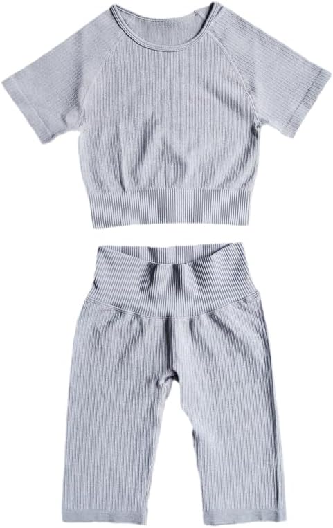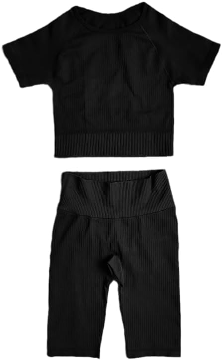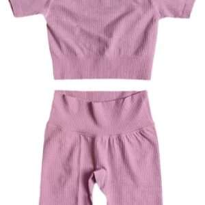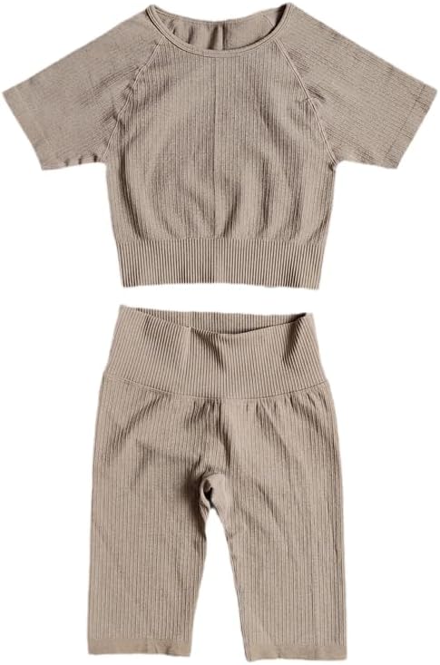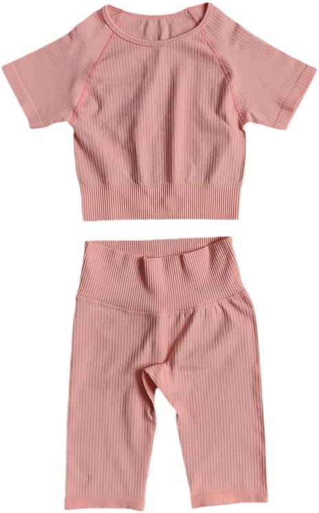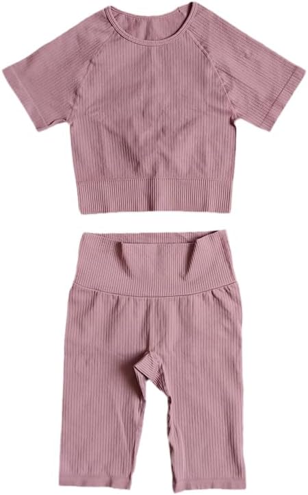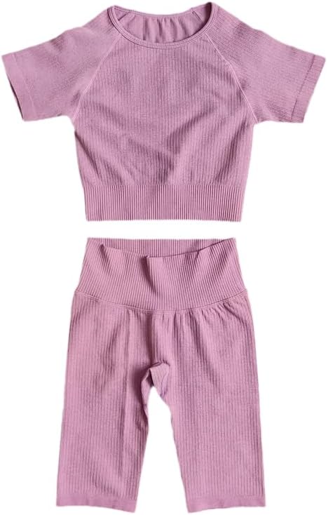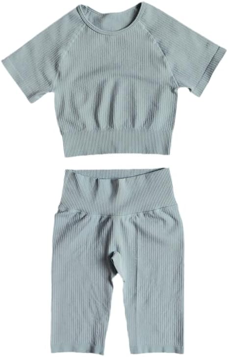 Yoga Solid Color Breathable Quick Dry Sportswear Super Stretch Workout Gym Suit Clothes Women Seamless Short Sleeve Top Waist Shorts Running Set”